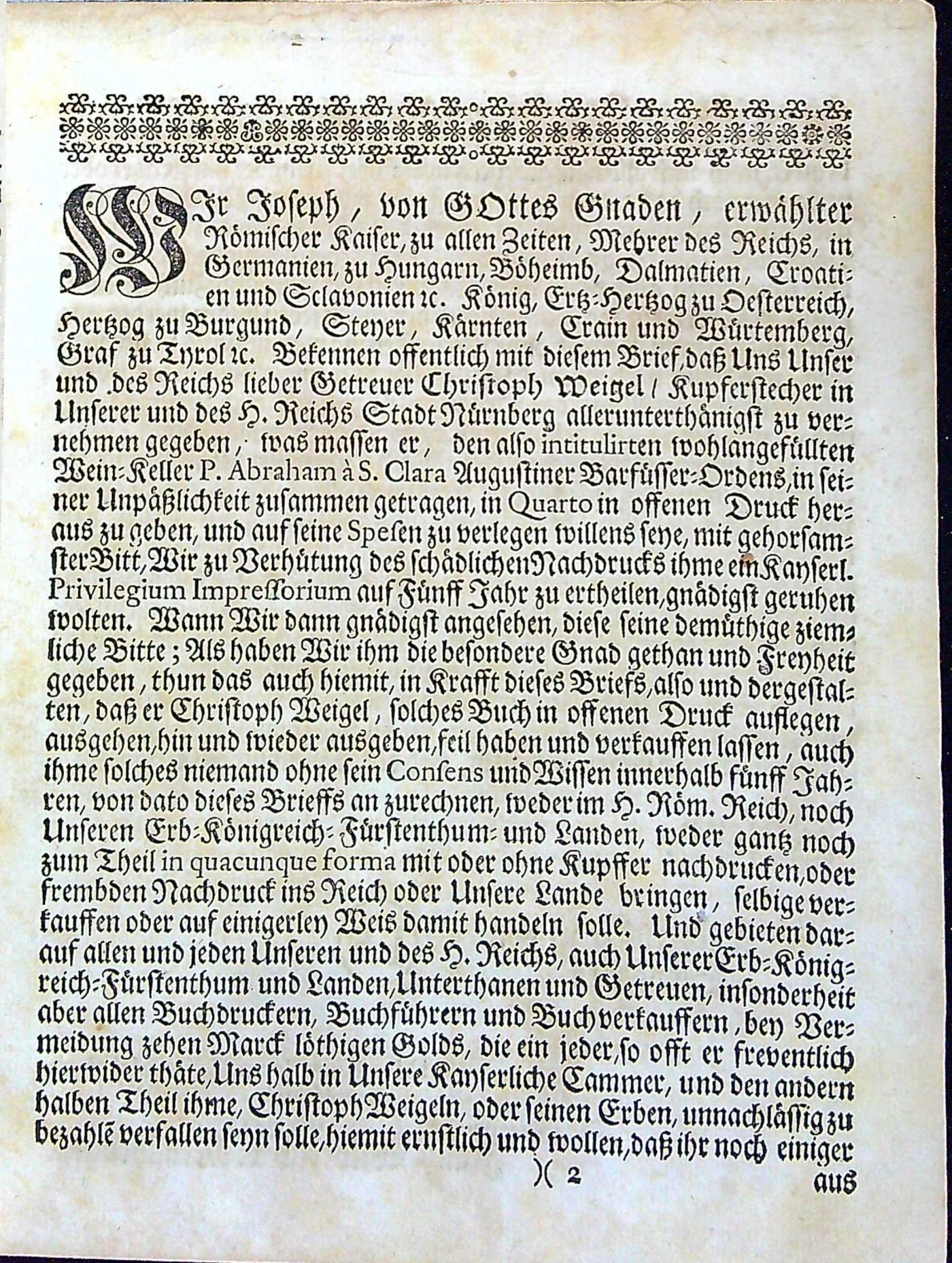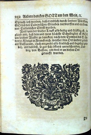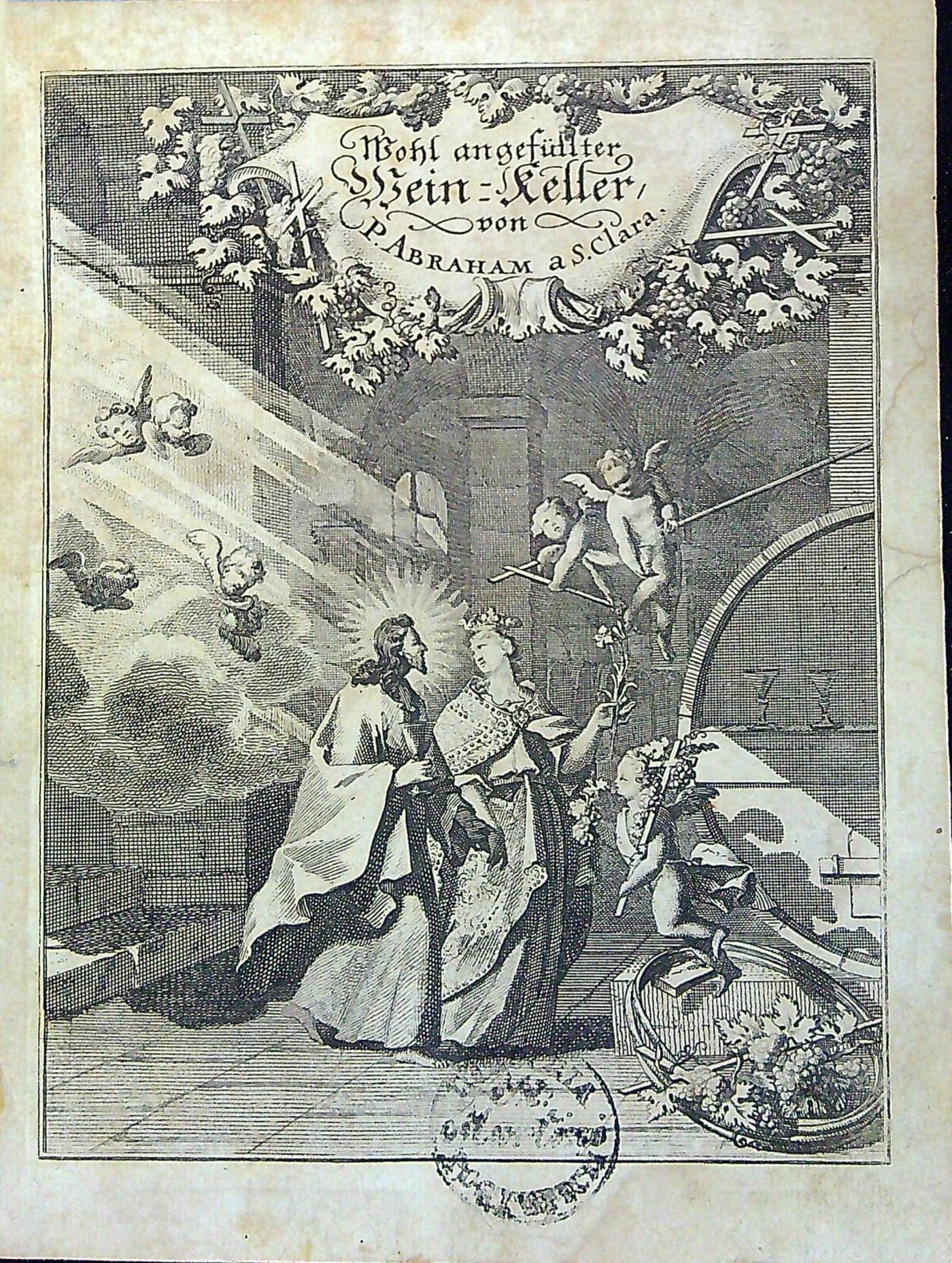 Wohl=angefüllter Wein=Keller, In welchem Manche durstige Seel sich mit einem Geistlichen Geseng=GOTT erquicken kan: Nach dem Exempel der himmlischen Braut in dem hohen Lied Salomonis, die sich berühmet, dass ihr Liebster sie in den Wein=Keller geführt habe, Introduxit me in Cellam Vinariam, Cont. 2. Ein solcher Keller ist gegenwärtiger Tractat, in welchem füsse und saure Trunck nach Belieben zu finden.