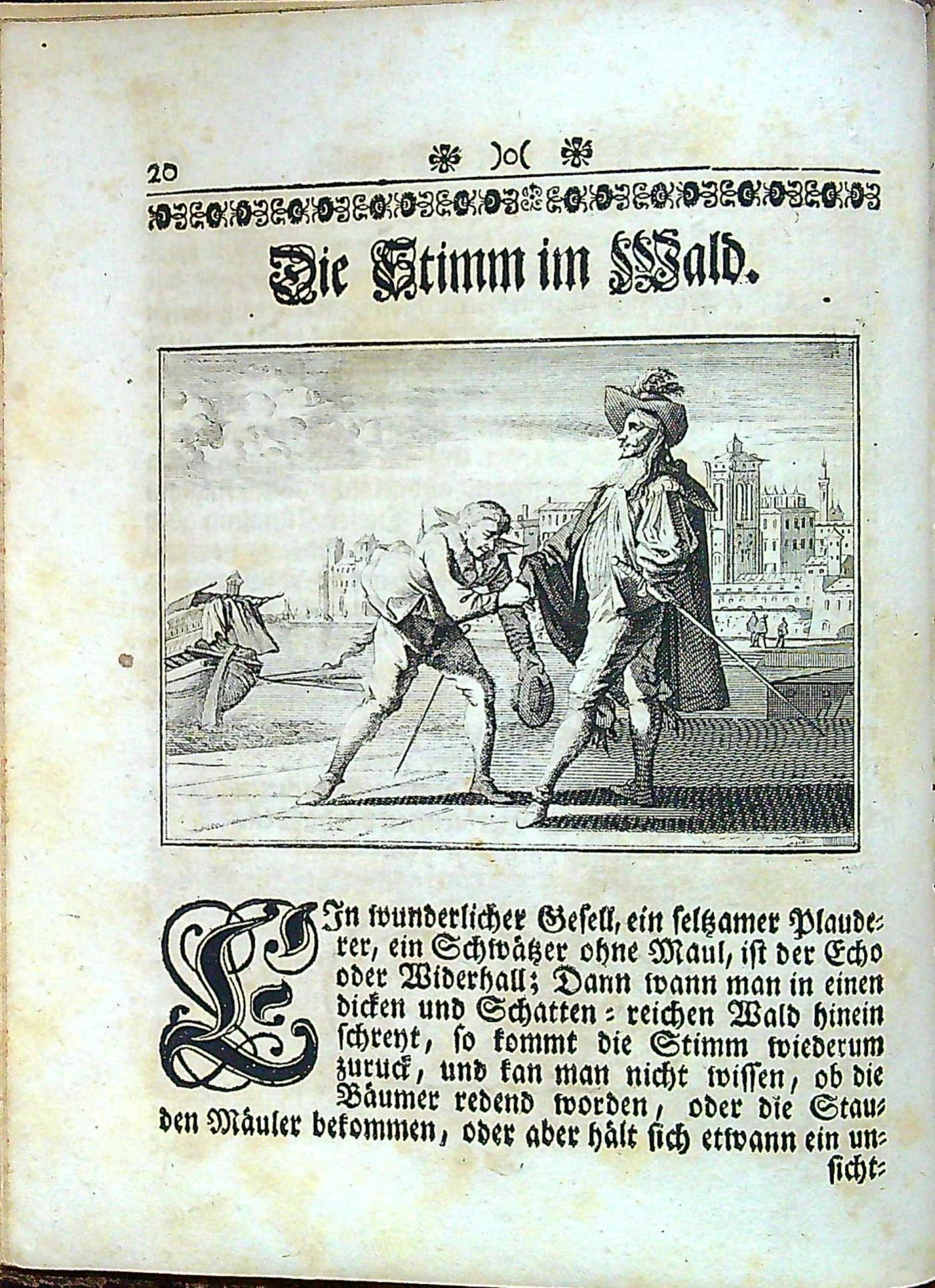 Dobová vazba z hnědé hověziny, ve hřbetu 5 vazů, ve druhém poli dobový kožený štítek s tlačeným a zlaceným názvem, v ostatních polích tlačený a zlacený ornament, barvené ořízky., Vazba ohmataná a místy odřená, na přídeštích a předsádkách dobový tragantový papír. Na mědirytinovém předtitulu při spodním okraji staré nečitelné razítko. Na titulním listu perem "Ex libris Leandri Abbatis 1773" (?). Papír místy lehce zahnědlý, chyby v paginaci.