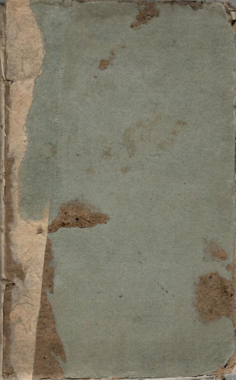 Dobová kartonová vazba potažená světle modrým škrobovým papírem, místy pap. pokryv odřený, ve hřbetu chybí zcela, naražené rohy, přední deska od šitého bloku rozvolněná, zadní uchycená pouze u prvního vazu, jinak uvolněná. Knižní blok neoříznutý.