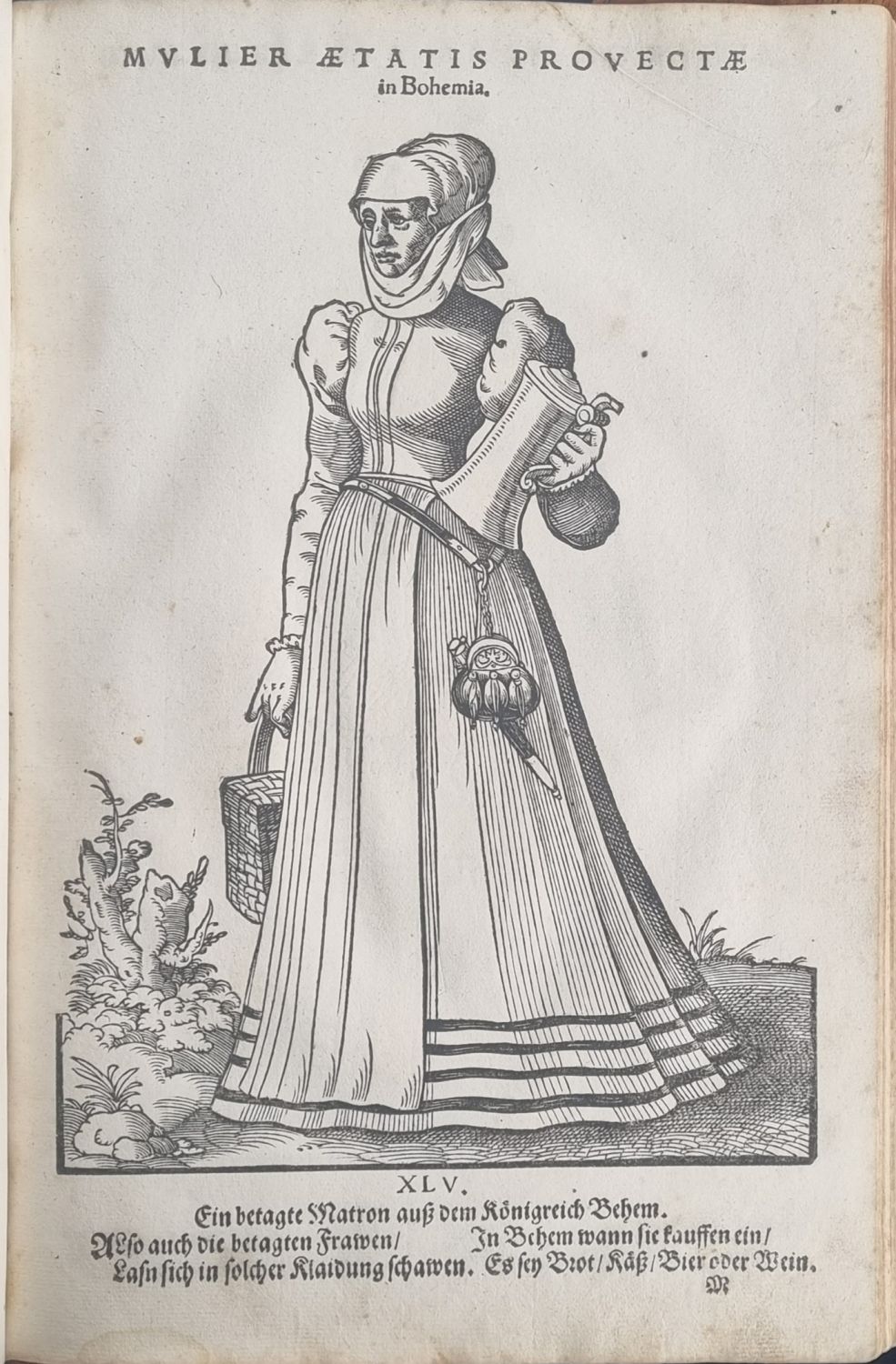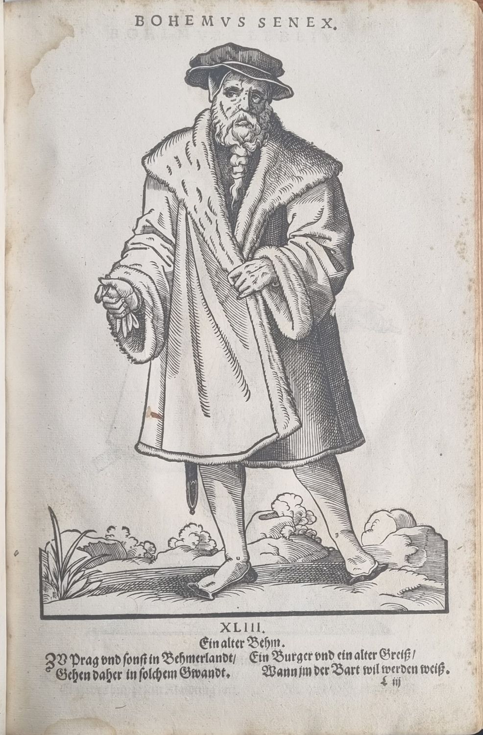Jost Amman (13.6. 1539 Curych - 17.3. 1591 Norimberk), švýcarsko-německý rytec, ilustrátor, grafik, malíř a editor knih. Od roku 1560 působil v Norimberku, kde se zdokonalil v umění dřevorytu v tehdy nejvýznamnější německé grafické dílně Virgila Solise. Po Solisově smrti dílnu i s vydavatelskými právy převzal a pokračoval v ilustracích nedokončených edic, které rozšířil o dodnes velmi ceněné a vydávané encyklopedie erbů, řemesel a oděvů. Vytvořil také 142 ilustrací ke Starému a Novému Zákonu a je také pravděpodobně autorem ilustrací k významnému zahraničnímu bohemiku "Costnitzer Concilium...." od U. Richentala vydaného roku 1575 ve Frankfurtu nad Mohanem. Ve své tvorbě preferoval oproti Solisovi dřevořez před mědirytinou. Nabízená encyklopedie mužských a ženských oděvů patří mezi jeho významná knižní díla.