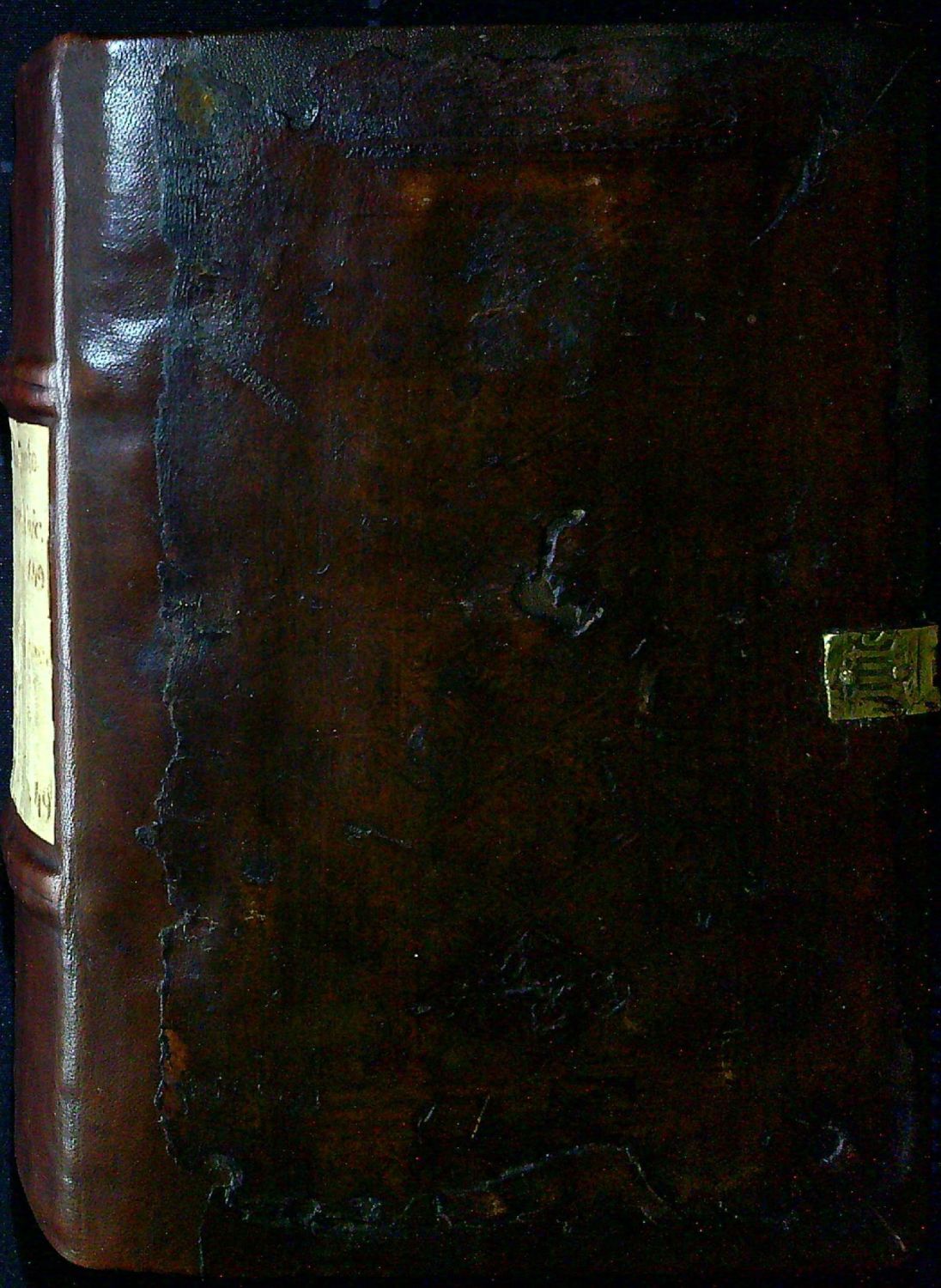 Nová kožená vazba - dřevěné desky potažené temně hnědou teletinou, na přední i zadní desce aplikované zbytky původního pozdně gotického koženého pokryvu zdobeného slepotiskem (na přední desce zbytky rámové kompozice, ve vnitřném rámu zčásti setřená kompozice s akantovými liánami a drobnými kvítky, uprostřed pole s razítky se stylizovanými liliemi. Na zadní desce zbytky vnějšího rámu, vnitřní rám zdobený geometrickým ornamentem, uvnitř rámu šest kosočtverců se zčásti setřenými groteskními maskarony. Na přední desce původní kovový úchyt s monogramem SM, na zadní desce uchycená nová kožená přezka s novým kovovým úchytem. Ve hřbetu dva vazy, mezi nimi papírový štítek z 19. století s názvem, na předsádkách nový papír. Několik listů zahnědlých, na několika listech drobné skvrnky od rzi, na několika místech stará pergamenová makulatura s torsem rukopisu sloužící ke zpevnění vazby. Vloženy 3 torsa makulatury, které se nacházely ve hřbetu knihy. - První vydání knihy kanonického práva od Henricuse de Odendorffa (cca 1399 - ?), rektora vídeňské university.