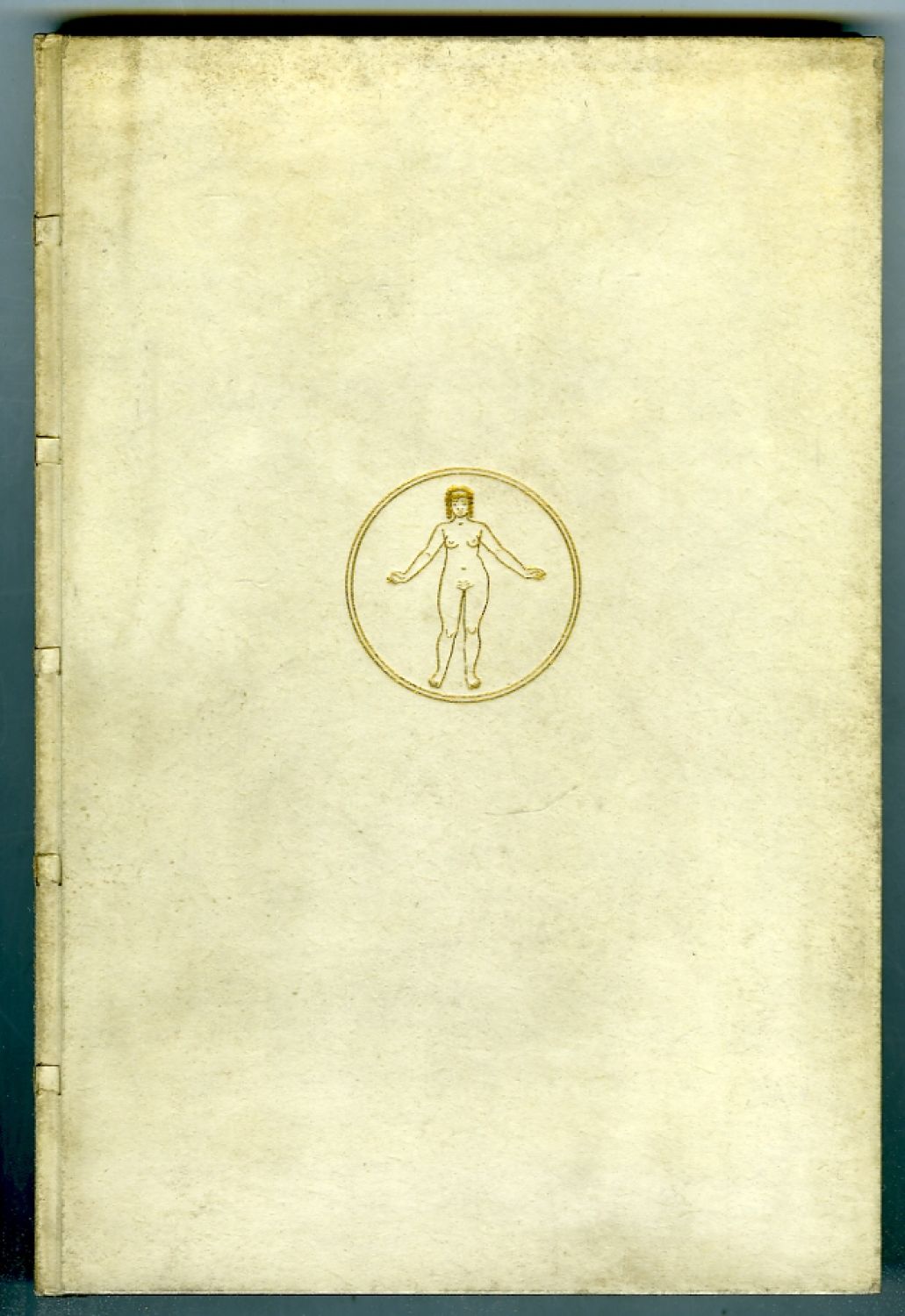 Dobová pergamenová vazba od Zdenka a Jana Nožičky. Uprostřed přední desky kulatý, tlačený a zlacený medailon s vyobrazením nahé Lysistraty, na desce zadní medailon s vyobrazením nahého Athéňana se ztopořeným falem ve hřbetu tlačený a zlacený název. Zlacené ořízky. Vazba lehce zašpiněná.