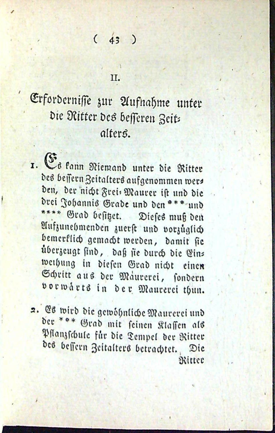 Tištěno švabachem. V prvé části knihy korespondence mezi mladým a horlivým zednářem Augustinem a velmistrem všech lóží o účelu o konečném cíli svobodných zednářů. Od strany 40 kapitolky o ústavě, rituálu, katechismu, stavbě chrámu pro rytíře lepšího věku a jejich oblečení, ....