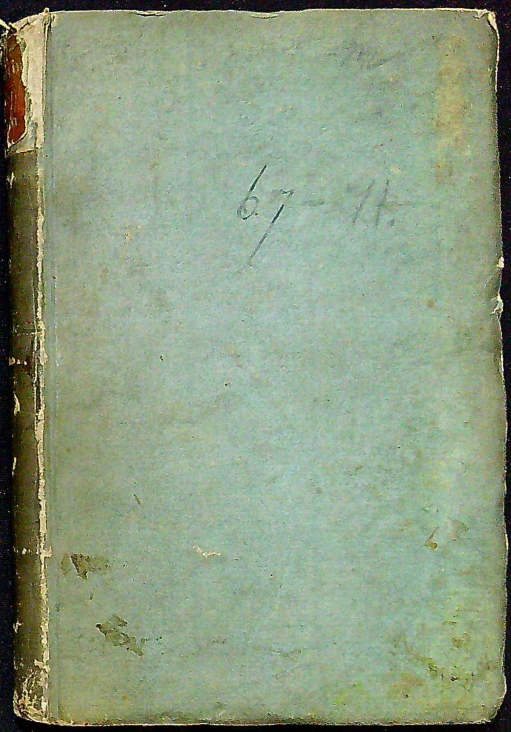 Dobová kartonová vazba, při horním okraji hřbetu dobový kožený štítek s tlačeným názvem, barvená svrchní ořízka. Vazba ohmataná a místy odřená, kožený štítek při okraji přední desky odtržený, na rubu přední předsádky tužkou anglický přepis titulního listu, při vnějším horním okraji tit. listu staré razítko neurčené zednářské lóže "K.M:".