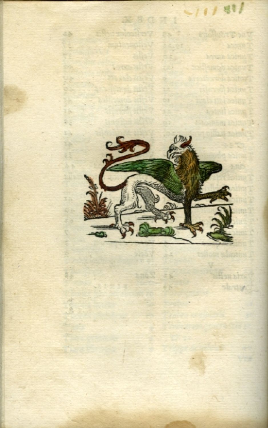 Na tit. listu a poslední straně odlišné, staře kolorované dřevořez. tiskařské signety, vstupní konturová zlacená iniciála na ilustrativním pozadí zalomená do výše 5 řádků.