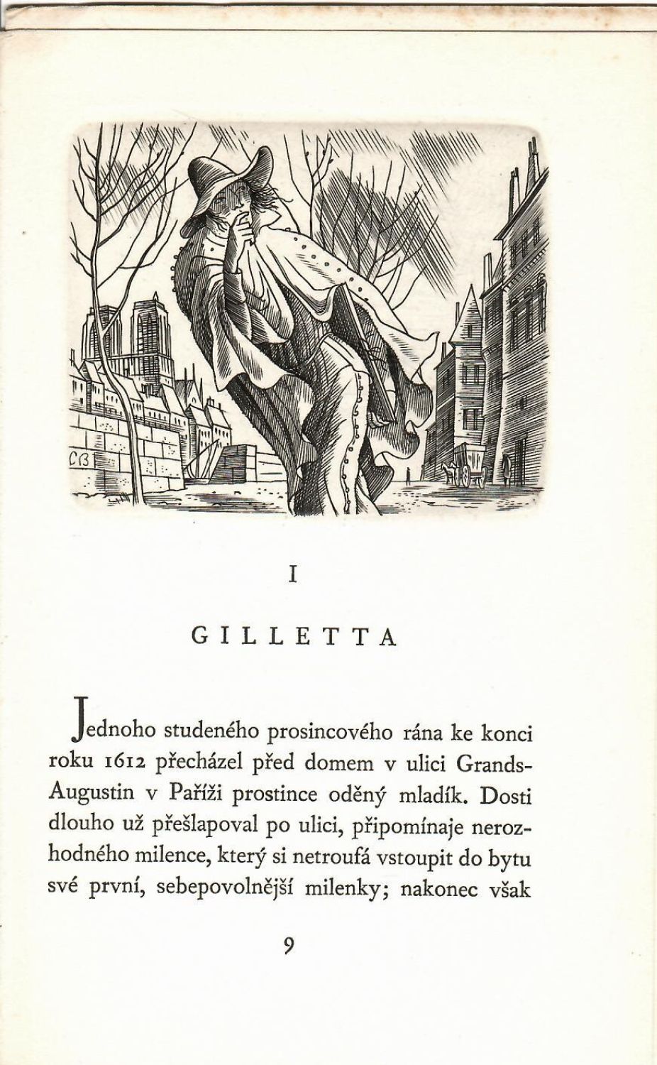 Překlad Miloslav Jirda, graficky upravil a pěti mědirytinami vyzdobil Cyril Bouda. Náklad 1000 výtisků. Vydal Spolek českých bibliofilů jako první svazek sbírky "Milé knížky".