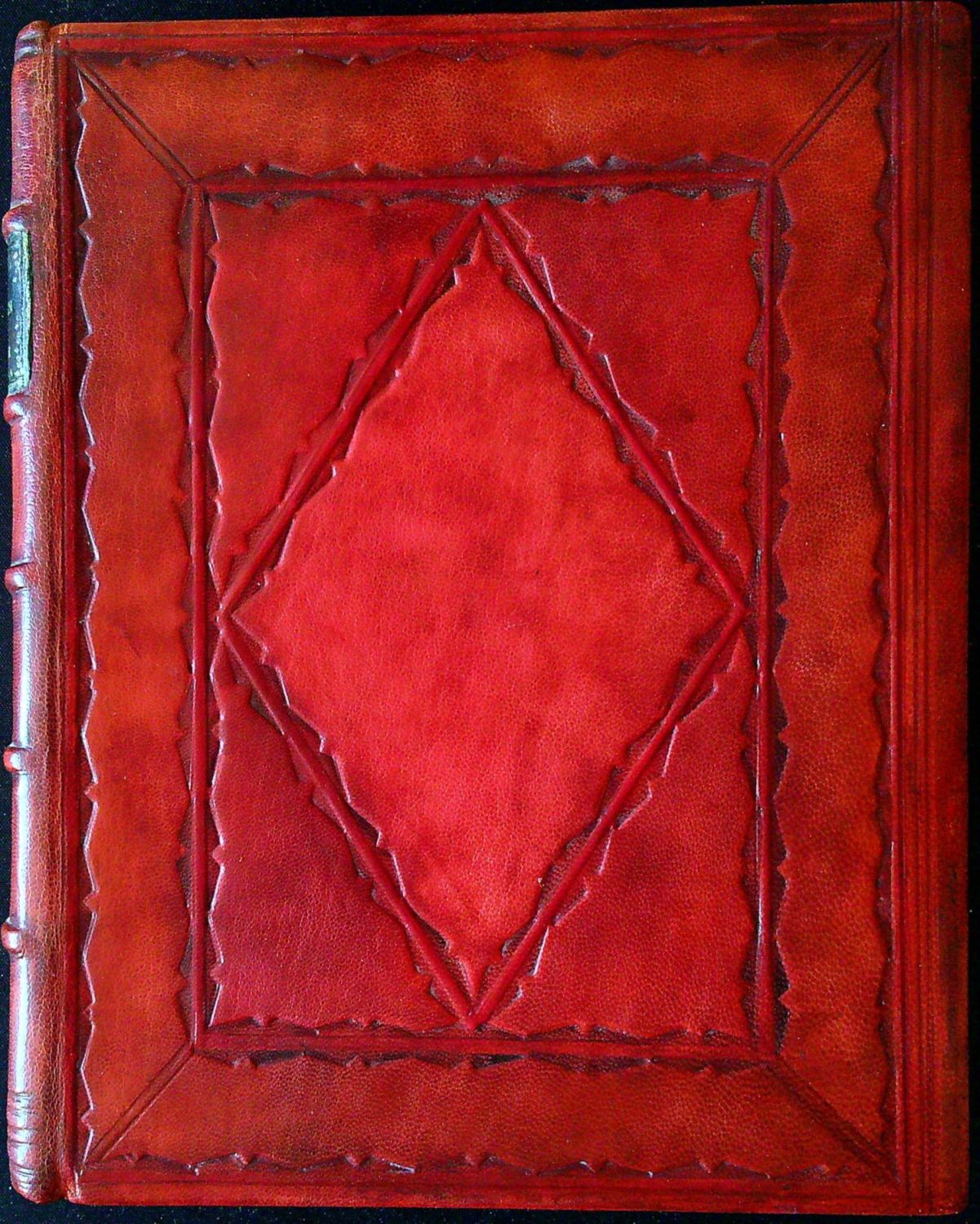 Individuální vazba z 20. století (243 X 200 mm)z hnědě barvené hlazené vepřovice, na obou deskách tlačený rám s řezaným reliéfem, uvnitř rámu kosočtverec, ve hřbetu pět vazů, ve druhém poli černý kožený štítek s tlačeným názvěm. Na přední předsádce a na tit. listu podpisy tužkou Jiřího Šalamouna. Titulní list lehce zašpiněný a při vnějším okraji mírně natržený, vedle viněty vpravo slabě patrné stopy po provenienčním razítku či značce. Na rubu poslední mědirytiny při vnějším spodním okraji staré kulaté razítko s iniciálami V.V. a tužkou podpis, snad Vojtíšek.
