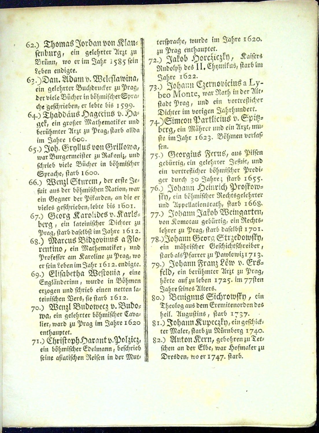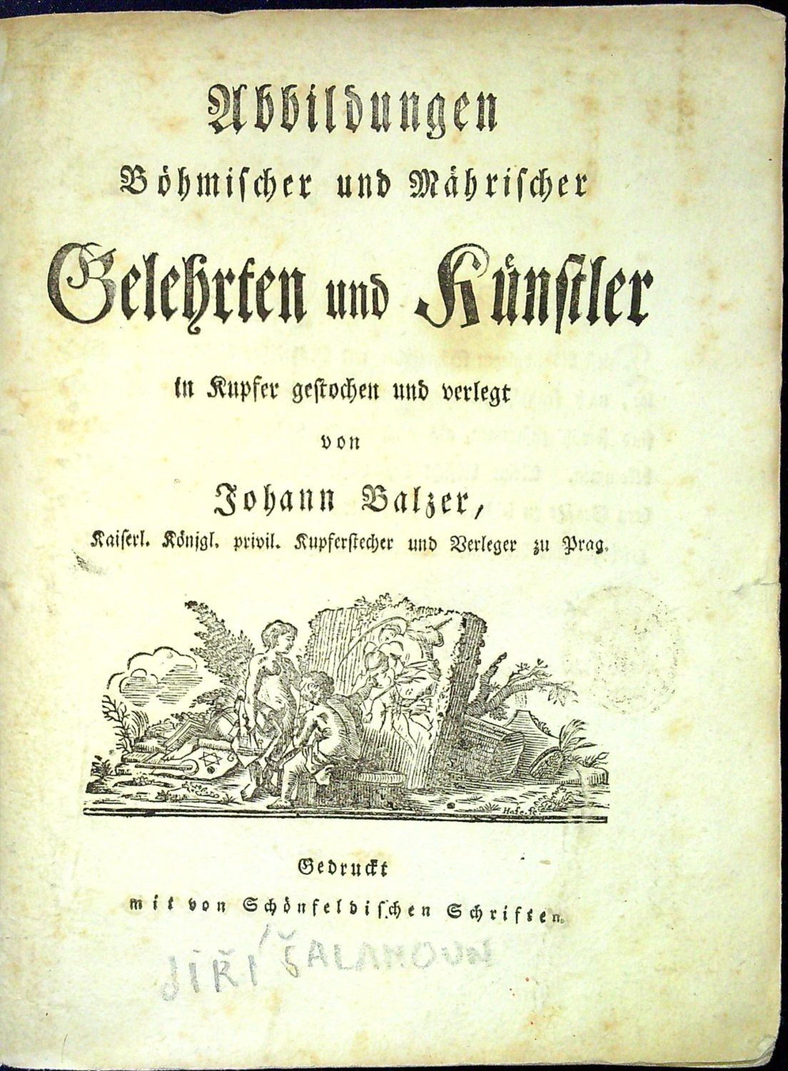 Abbildungen Böhmischer und Mährischer Gelehrten und Künstler in Kupfer gestochen und verlegt von Johann Balzer, Kaiserl. Königl. privil. Kupferstecher und Verleger zu Prag.