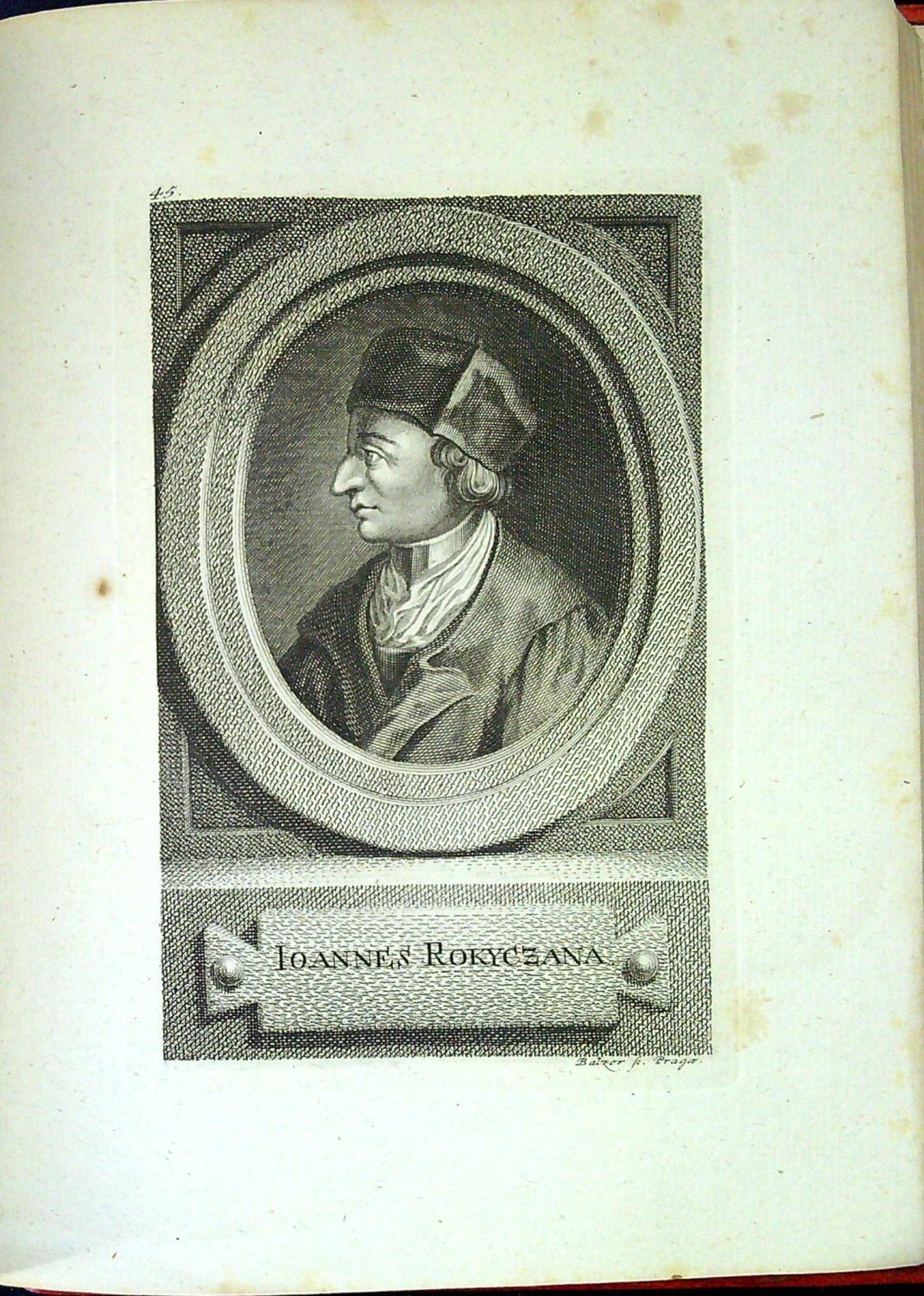 Zíbrt I/478. - Německý text gotikou, latinská podoba portrétovaných osobností versálkami a antikvou, na tit. listu dřevořezová viněta (nahá dívka s polonahým chlapcem zkoumající kresbu na mohutném bloku, na vinětě též zednářské symboly - úhelník, šesticípá hvězda) signovaná vpravo dole v desce Hafe (?). fc. Na rubu titulního listu úvodní slovo pravděpodobně Schönfeldovo, na třech následujících listech stručné životopisy portrétovaných tištěné ve dvou sloupcích od sebe oddělených trojitou linkou (prostřední tučně tištěná), v závěru dřevořezová viněta, mědiryt. front., 87 listů s portrétními mědirytinami. - Popsaný exemplář se liší od všech exemplářů popsaných v SKC a v Claviu - na titulním listu odlišná viněta, medailony jsou tištěny ve dvou sloupcích a jsou stručnější, v jejich závěru viněta, na rubu titulního listu tištěná, pravděpodobně Schönfeldova reklama knihy, ve které se mimo jiné píše "Tyto ilustrace českých a moravských učenců ... vytištěné ve formátu kvart francouzskými (sic!) mědirytci jsou u mne k dostání dohromady i samostatně za rozumnou cenu ....".
