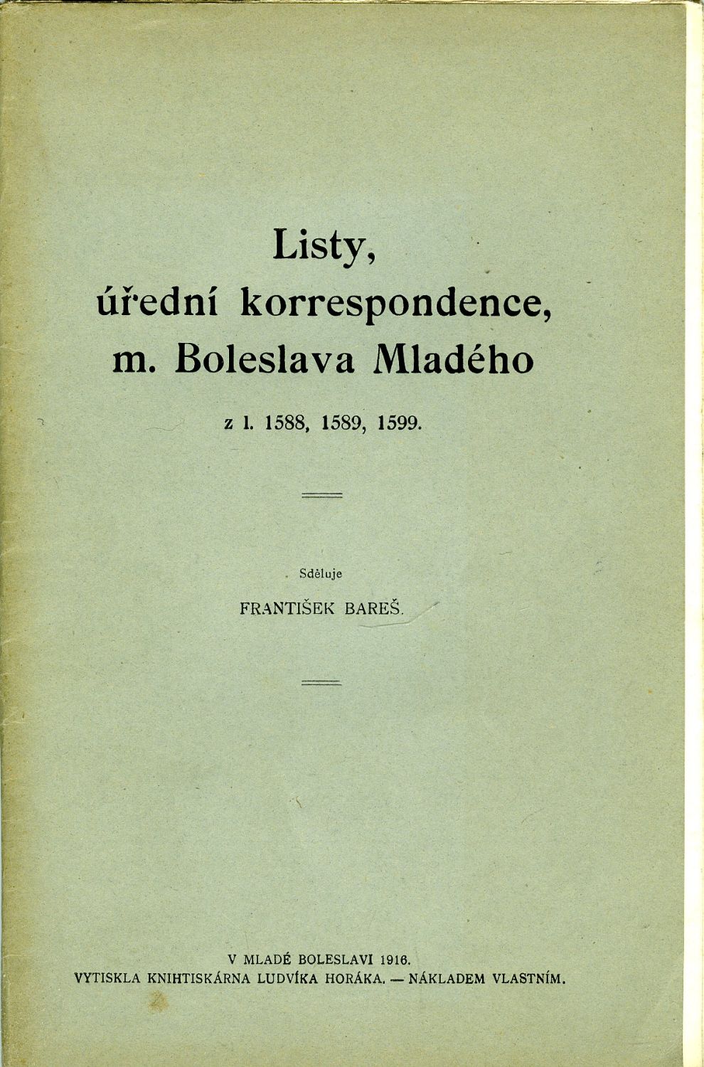 Listy, úřední korrespondence, m. Boleslava Mladého z l. 1588, 1589, 1599.