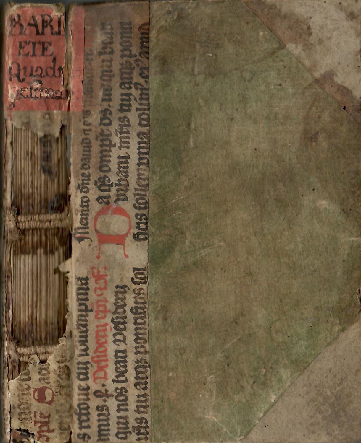 Kartonové desky z 19. století, kožené nárožnice, podél hřbetu na obou deskách pergamenový pokryv z rukopisu 15. století (ve hřbetu pokryv chybí. Ve hřbetu 3 vazy, v prvním poli štítek s rkp. psaným názvem, vazba ohmataná. Na tit. listu vybledlé proven. přípisy perem, pod kolofonem starý rkp. přípis hnědým perem (hnědým perem přeškrtaný). V textu místy hnědé mapy způsobené vlhkostí.