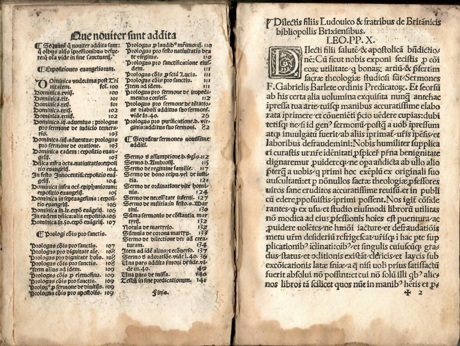 Barlete Sermones exactissime i[m]pressi: [et] p.[er] F. B[e]n[e]dictu[m] britanicu[m] ad vngue[m] castigati additis multis q[uo] alijs o[mn]ibus i[m]presionibus defuere. Quo[um] notitia[m] additame[n]to[rum]: facile[m] studiose lector habebis: si subseque[n]te[m] notula[m] lectitabis.