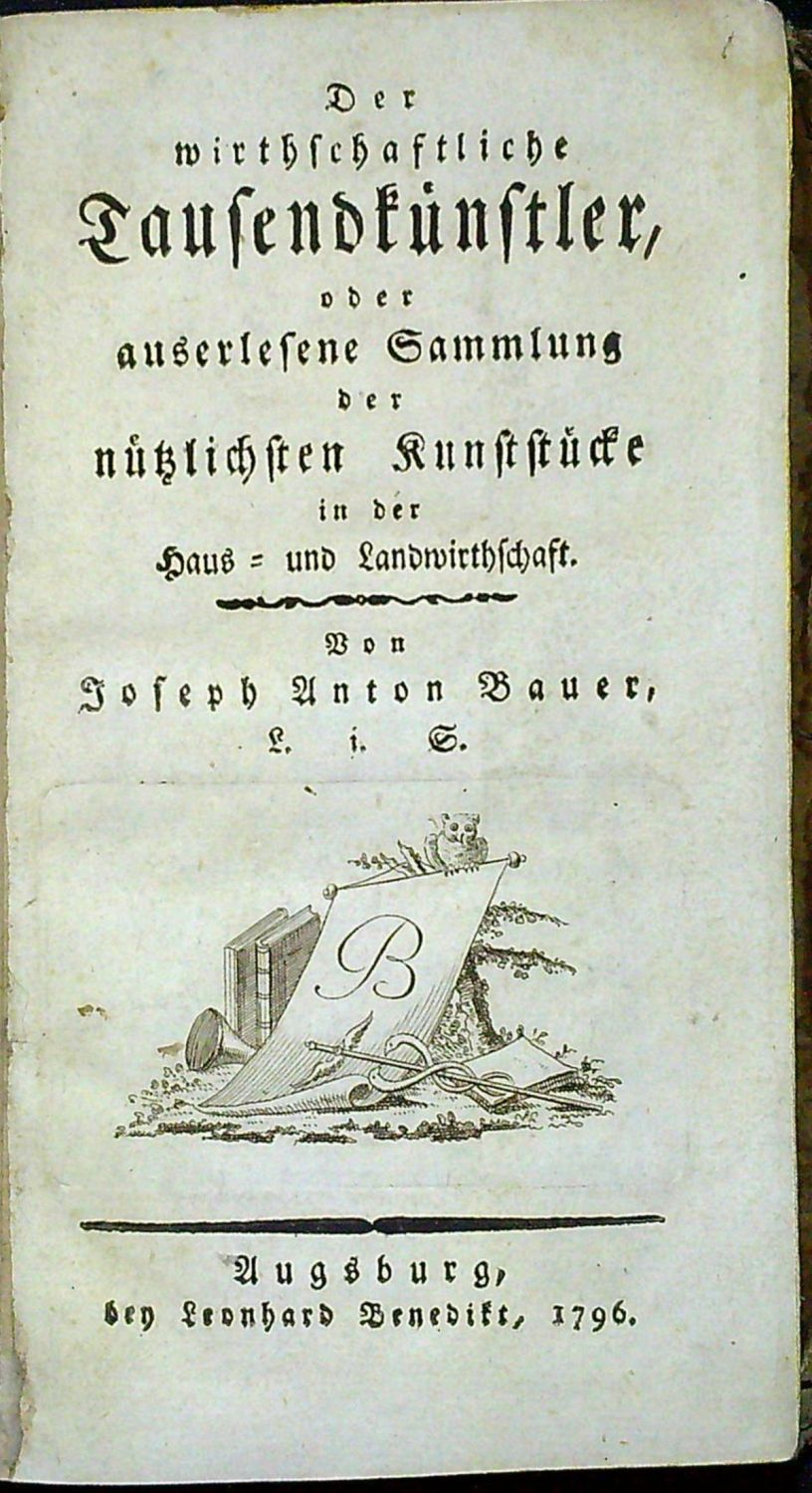 Der wirthschaftliche Tausendkünstler, oder auserlesene Sammlung der nützlichen Kunststücke in der Haus = und Landwirtschaft.