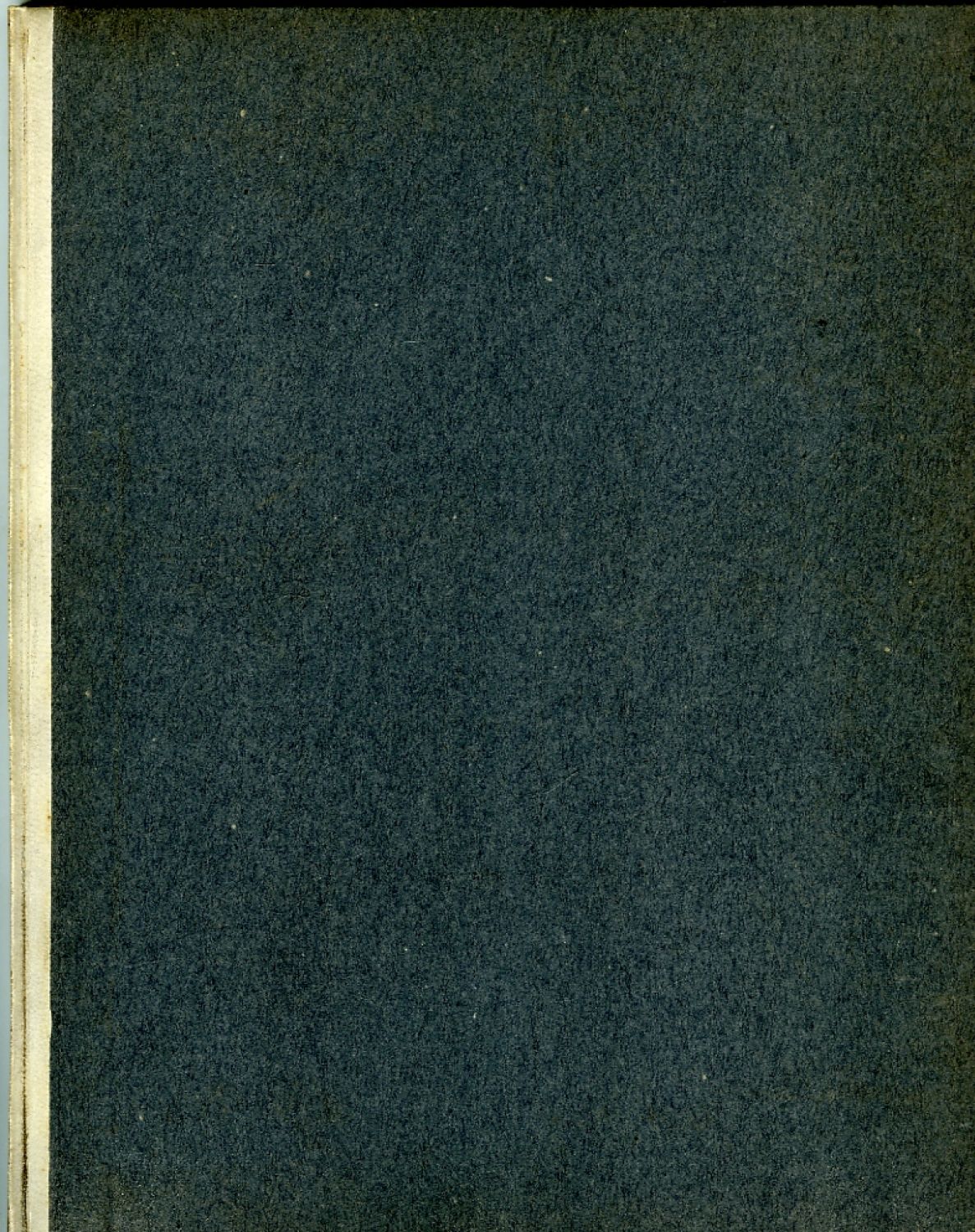 Dobová vazba, kartonové desky s pergamenovým hřbetem, uprostřed hřbetu mezi černě malovanou kompozicí z drobných ornamentů tlačený a zlacený název. Na předsádkách dobový papír s geometrickou kompozicí.
