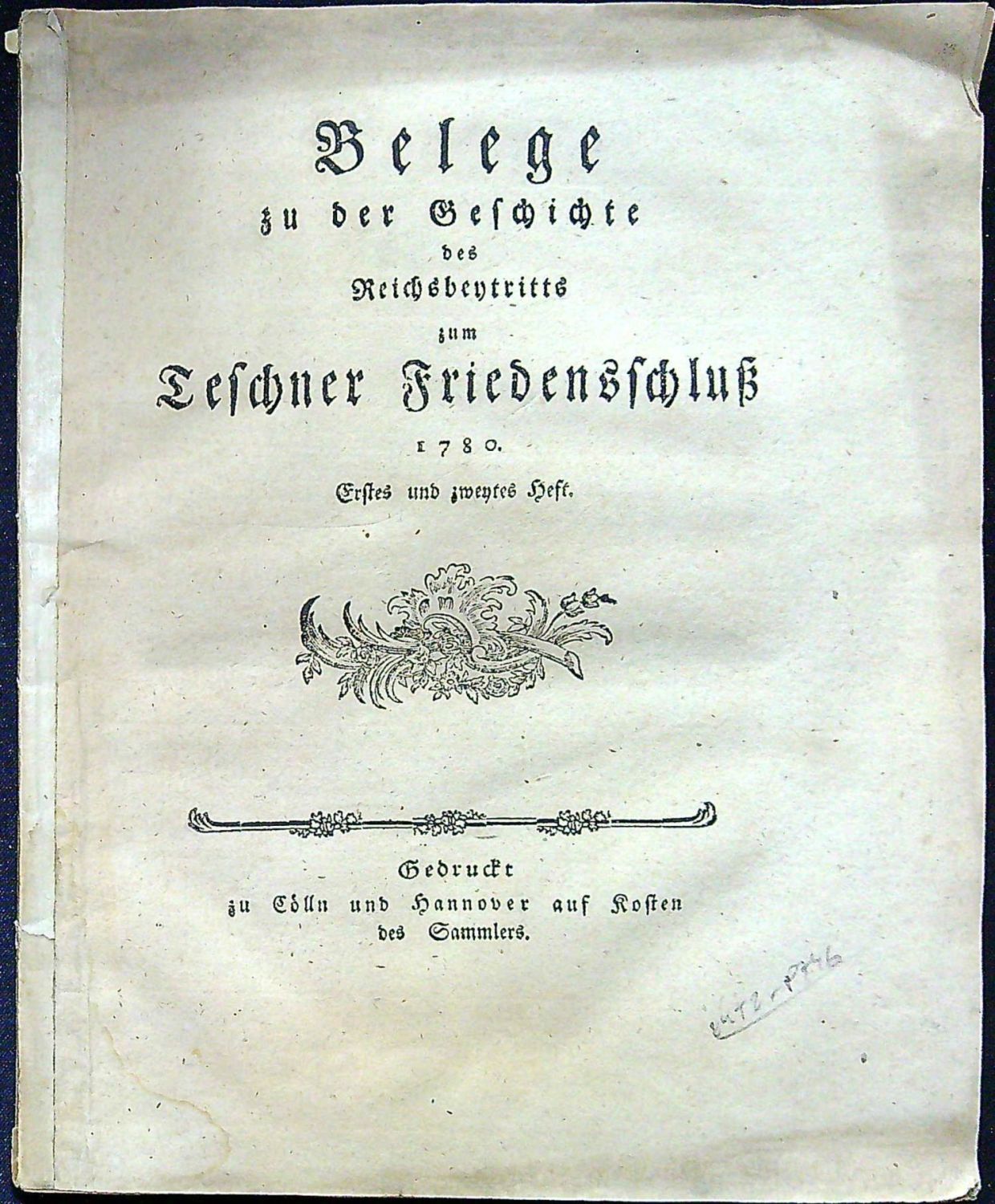 Belege zu der Geschichte des Reichsbeytritts zum Teschner Fiedenschluss 1780. Erstes und zweytes Heft.