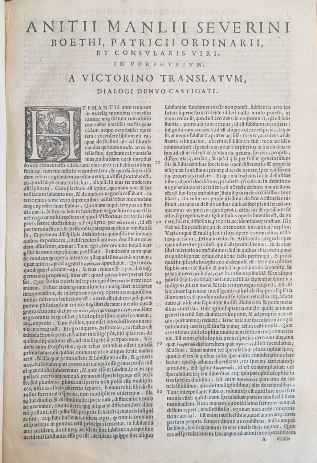ANITII MANLII SEVERINI BOETHI, INTER LATINOS ARISTOTELIS INTERPRETES ET AETATE PRIMI, ET DOCTRINA PRAECIPVI, DIALECTICA. In qua quidem emendanda tantam adhibuit MARTIANVS ROTA diligentiam, ut nunc post omnes aliorum editiones ex manu scriptis libris multa, quae plerisque locis desiderabantur, addiderit; multa, quae deprauata erant, emendarit; totum denique opus in meliorem formam redegerit, ac plane illustrarit. quod, qui hos libros cum caeteris, qui hactenus in lucem prodierunt, contulerit, factum esse perspiciet. Index rerum omnium copiosissimus.