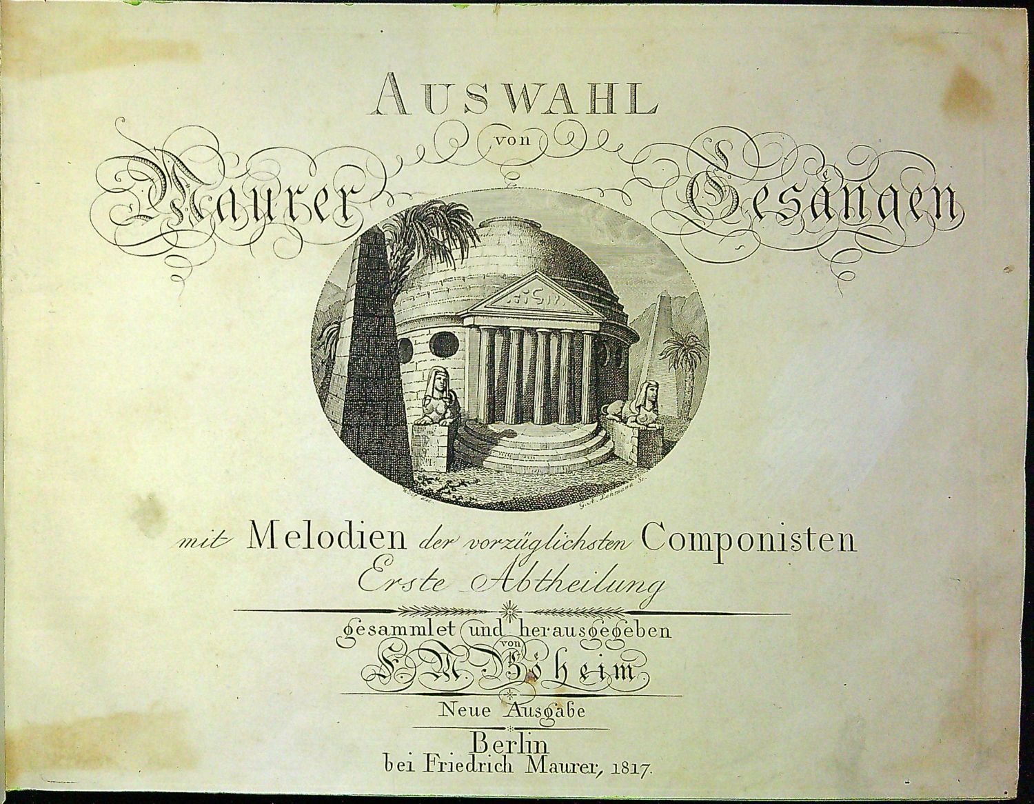 Auswahl von Maurer Gesängen mit Melodien der vorzüglichsten Componisten. Erste und Zweite Abtheilung.