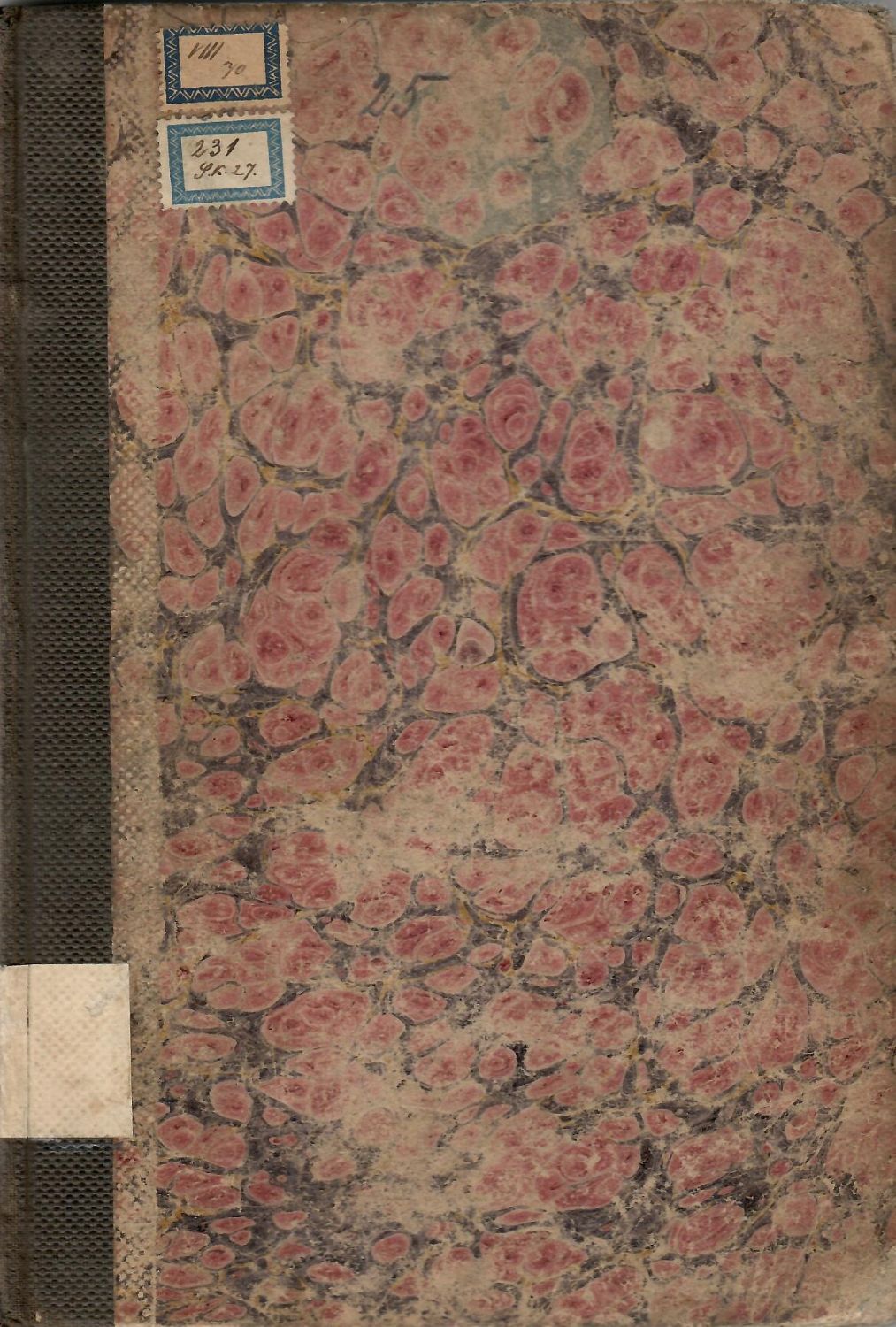 Na titulním listu několik razítek. Listy zažloutlé, ohmatané, místy světle hnědé skvrnky. V textu místy poznámky tužkou. Desky podřené, rohy naraženy. Při levém horním okraji přední desky a ve hřbetu vlepeny papírové štítky.