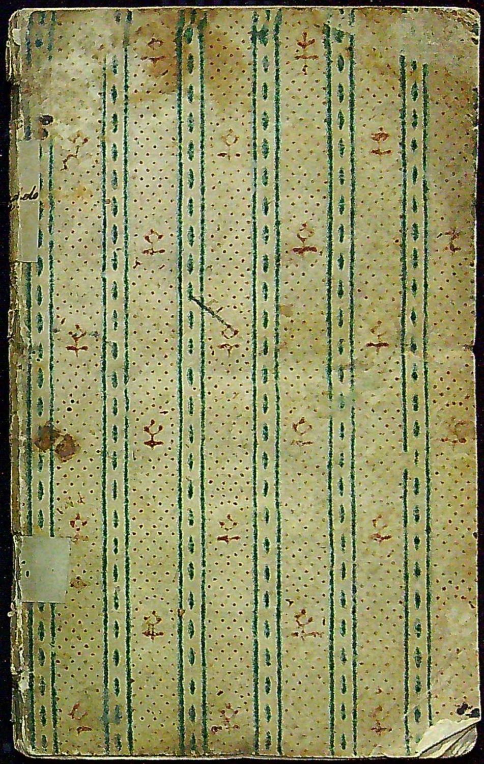 Tištěno švabachem, latinská slova antikvou, mizící linky, vstupní pásový vlys, viněta, hvězdičky. - Dobová pap. obálka z tragantového papíru, zašpiněná, ve hřbetu zčásti chybí pap. pokryv, místy pro zpevnění hřbetu nalepeny pap. pásky. Papír zahnědlý, místy světle hnědé mapky od vlhkosti. Na tit. listu poznámka modrým perem.