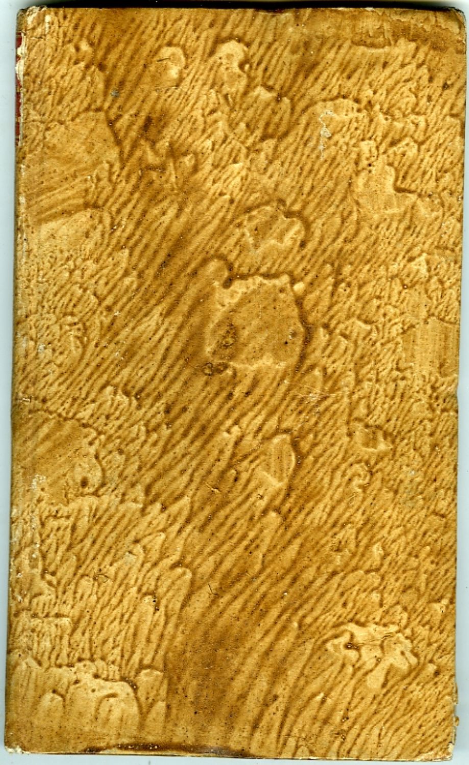 Dobová kartonová vazba s deskami potaženými mramorovaným papírem, při horním okraji hřbetu dobový kožený štítek s tlačeným a zlaceným názvem, stříkané ořízky. Kožený štítek při okrajích lehce odřený, mírně naražené rohy. Na přední předsádce a na titulním listu stará sbírková razítka ("Gyulai Gaal Gaston Könyvtára").