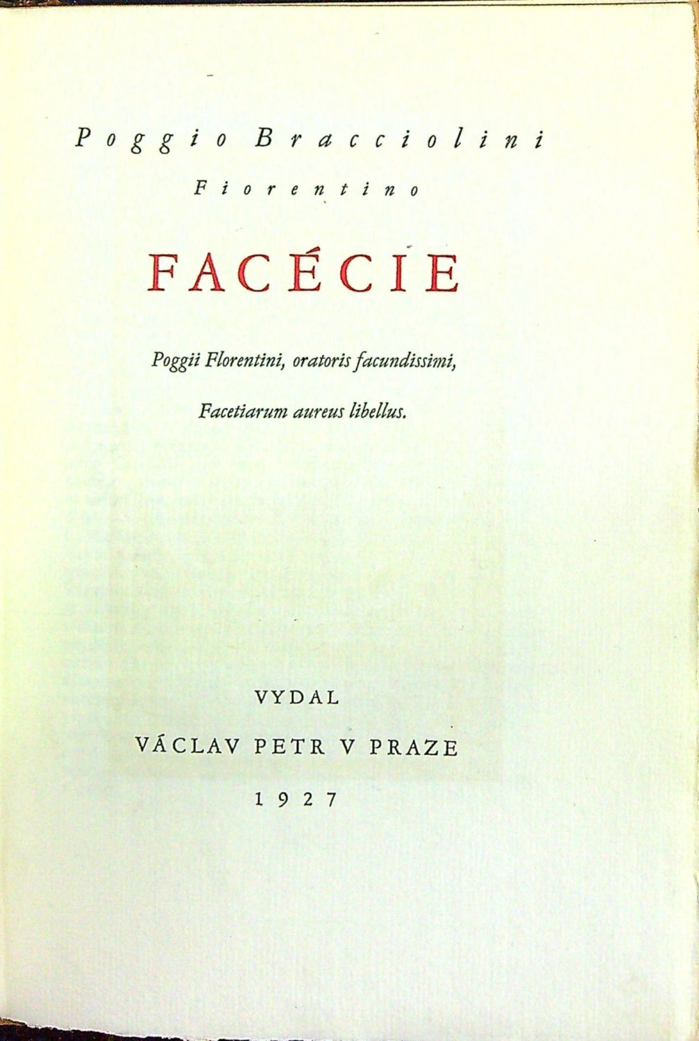 Ex. č. 50 z 300 vydaných pouze pro subskribenty. Na papíře Van Gelder typy písma Claude Garamonda vytiskla knihtiskárna F. Obziny ve Vyškově. Část výtisků byla svázána do kůže, část do pergamenu knihařstvím Brandejs a Jelínek v Brně. Dvoubarevně tištěný tit. list, ve front. reprodukce mědirytiny s portrétem autora. Tučně tištěné versálky ve výši dvou řádků. Z latinského orinálu přeložil Ivan Převor.