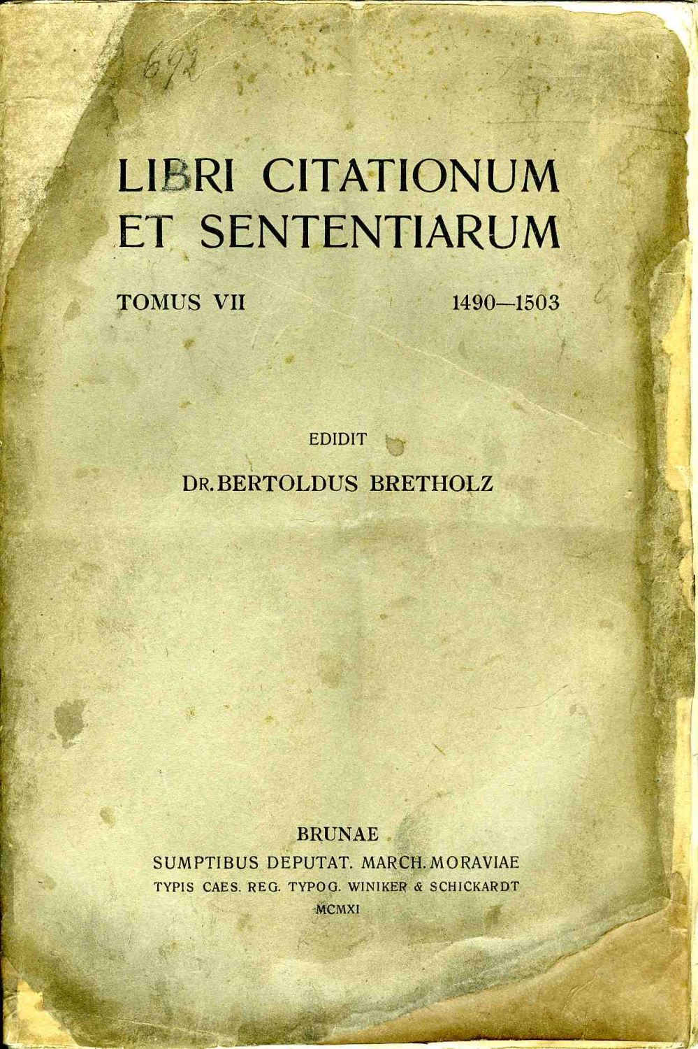 Poslední svazek edice knih půhonných a nálezových Markrabství moravského z let 1374-1503, základního pramenného díla pro studium dějin Moravy v období vrcholného středověku. - Obálka silně ušpiněná, na okrajích potrhaná a podlepená, listy čisté, nerozřezáno.