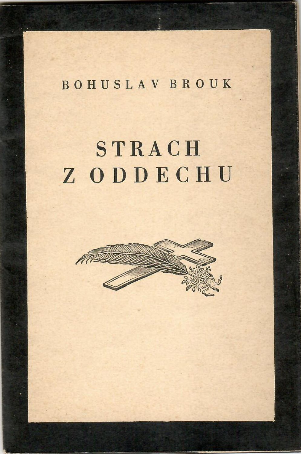 Původní obálka z tužšího papíru s chlopněmi pojatá jako parte, na přední i zadní straně obálky drobné ilustrace, text volně vložený do černého dvoulistu (původní adjustace). Vloženo Broukovo smuteční oznámení o smrti jeho matky.