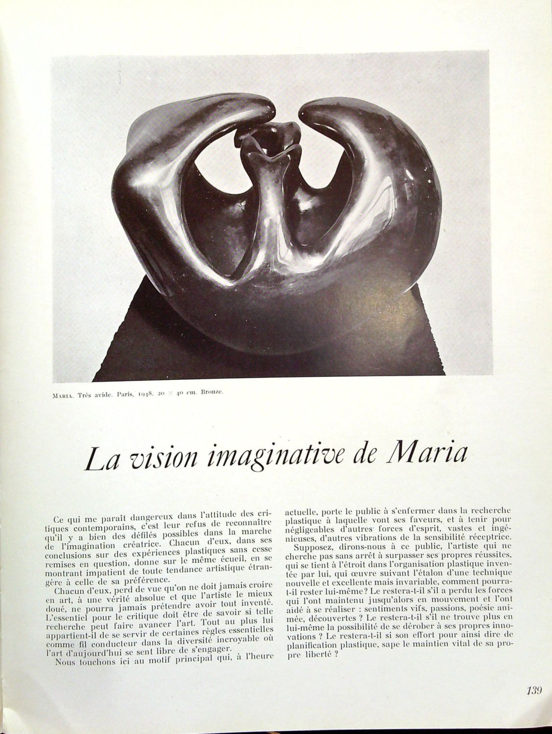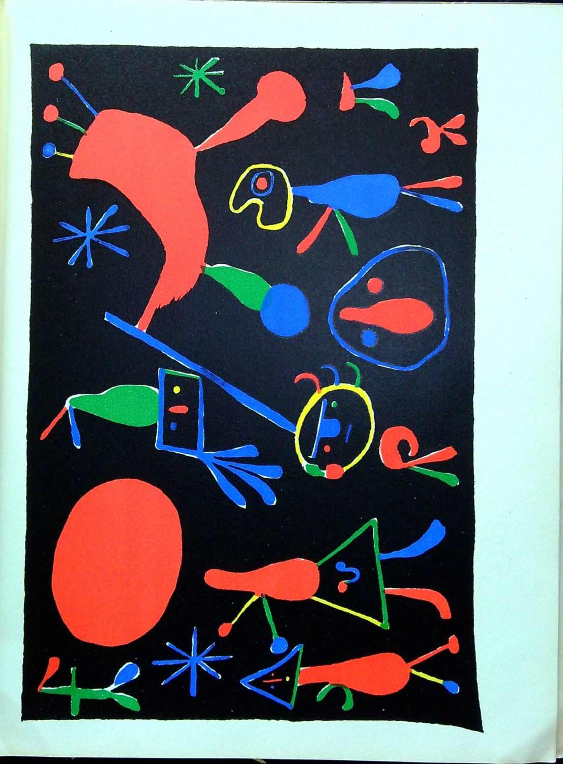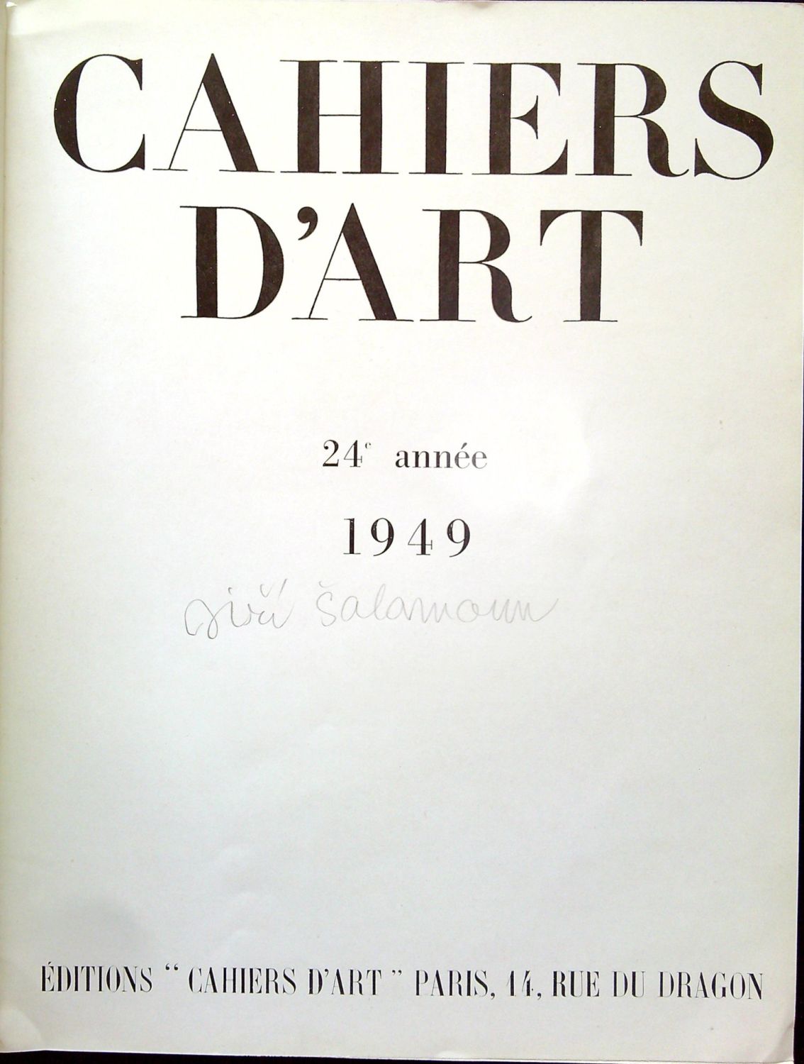 V textu řada černobílých fotografických vyobrazení, mezi stranou 80-81 barevný pochoir (300 x 220 mm) F. Legera, mezi stranou 116-117 původní barevná litografie (190 x 285) Joana Miro. - Původní pap. obálka, zašpiněná, na přední straně při horním okraji u hřbetu chybí kousek papíru, při horním i spodním okraji hřbetu chybí též kousek pap. pokryvu. Při horním okraji obálky a na prvním listu s obsahem podpisy tužkou Jiřího Šalamouna.