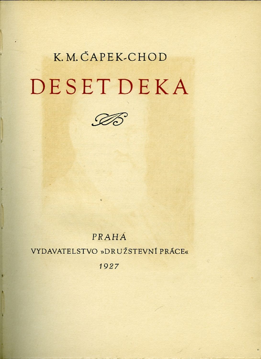 Ex. č. 31 z 320 vydaných a číslovaných výtisků (krom toho vyšlo 50 neprodejných) tištěných na holandský ruční papír typem písma Cicero Gouda. Typograficky upravil Karel Dyrynk, lepty vytiskl Alessandro de Pian. Přiložen leták z nakladatelství s doplňující informací o leptu ve front. (portrét autorův) dle které si autor nepřál aby byl součástí výzdoby knihy a s vysvětlením proč není kniha autorem podepsána.