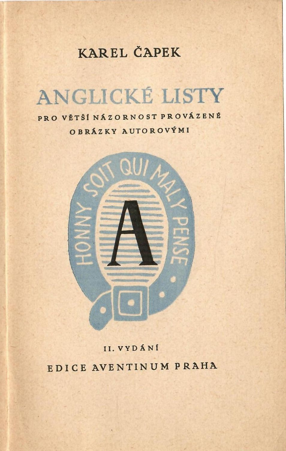 Dvoubarevný linoryt na obálce a nakladatelská značka v titulu dílem Josefa Čapka. "Oslí" rohy, při horním okraji hřbetu obálka drobně natržena. Na patitulu černou tuší podpis "R. Melicharová". Knižní blok se částečně odlepuje od obálky, neoříznut.