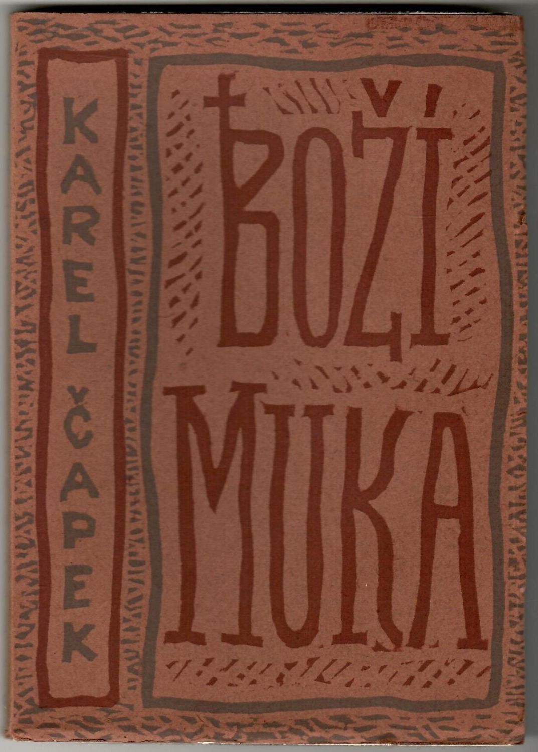 Dvoubarevný linoryt na obálce a nakladatelská značka v titulu dílem Josefa Čapka. Papírová obálka při vnějším okraji lehce pomačkána, knižní blok neoříznutý. Pěkný stav.