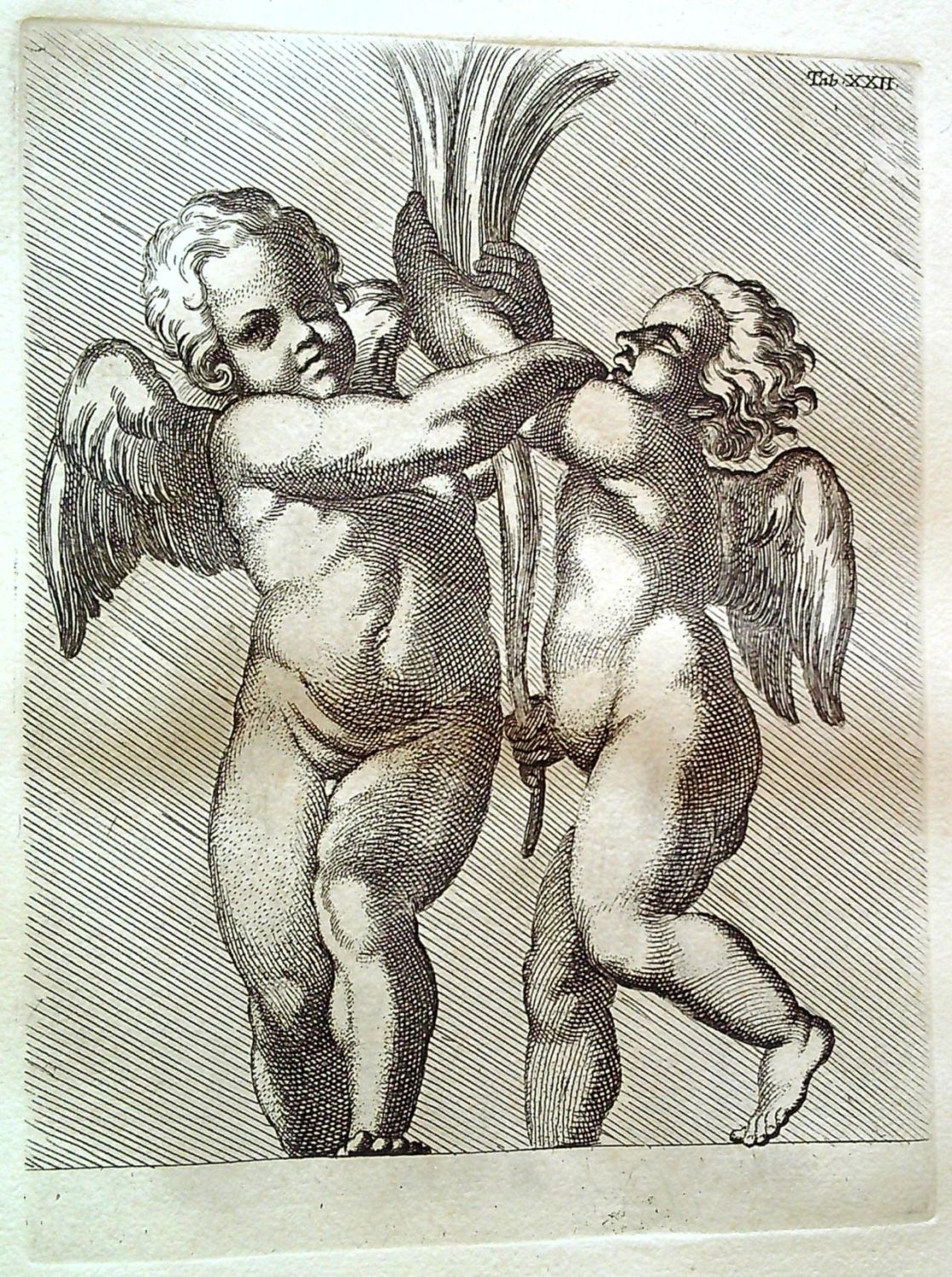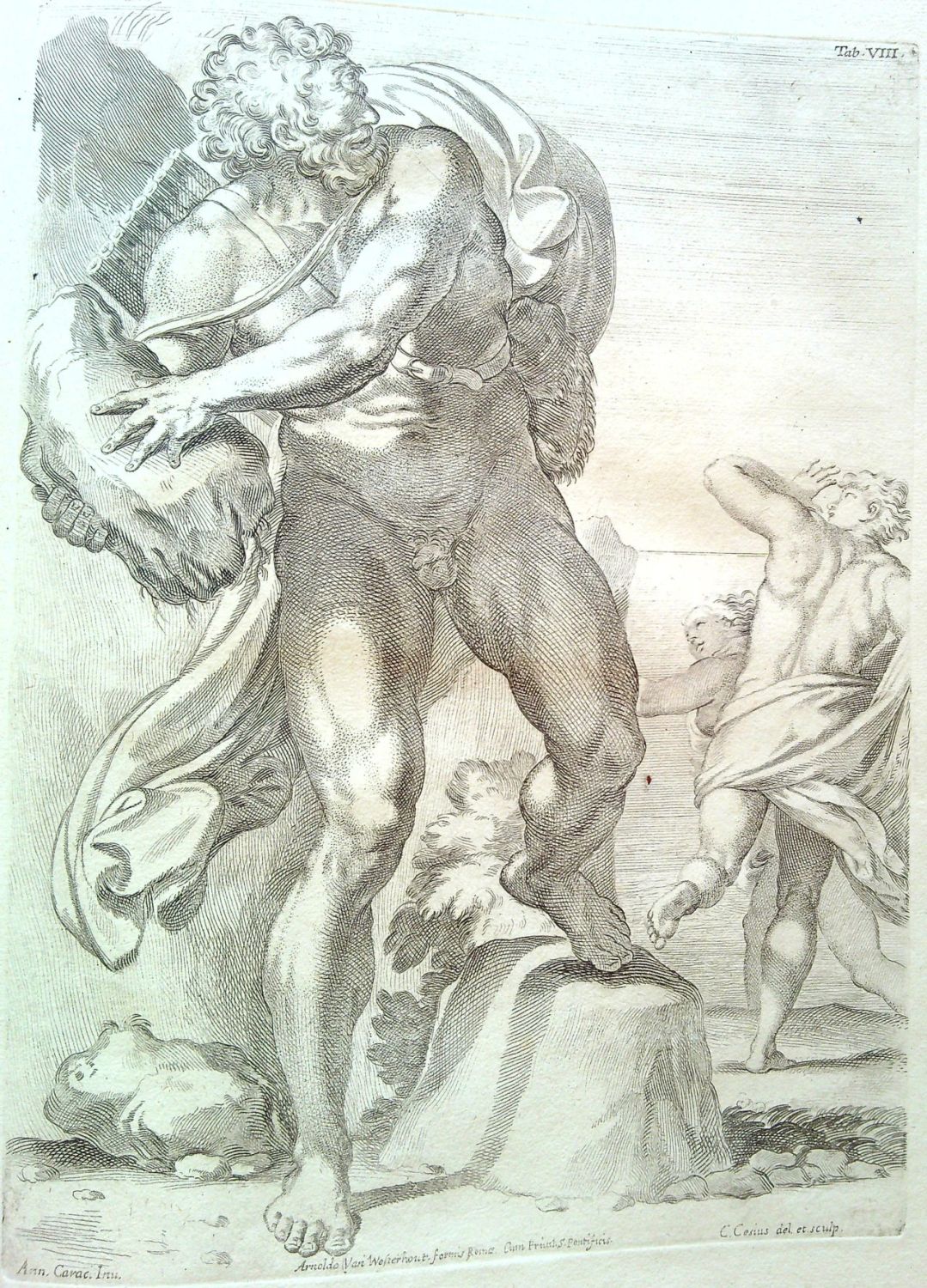 Rytý titulní list, na dalším listě celostránková mědirytina s portrétem Anibala Caracciho, následuje 33 + 1 číslovaných tabulí (z toho 10 dvoustranných) se 40 mědirytinami, které podle A. Carracciho a C. Cesia ryl A. van Westerhout.