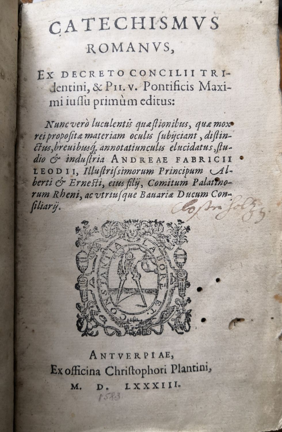 CATECHISMVS ROMANVS, EX DECRETIO CONCILII TRIdentini, & PII. V. Pontificis Maximi iussu primum editus: ....studio & industria ANDREAE FABRICII LEODII, ....
