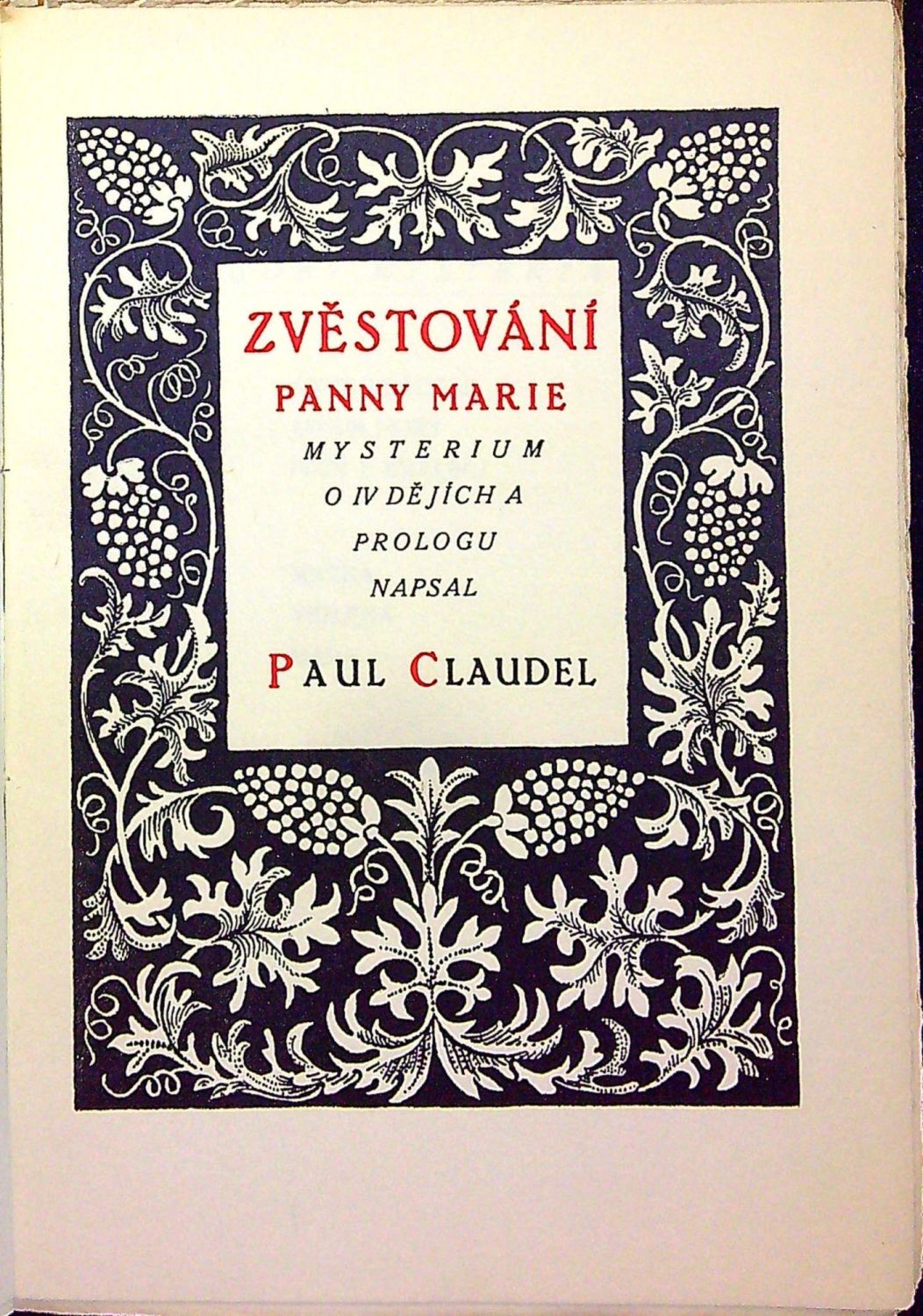 Dřevořezy vyzdobila Zdenka Braunerová (viněta na obálce, opak. na konci, jiná na patitulu, orámování černě a červ. tištěného tit. listu).