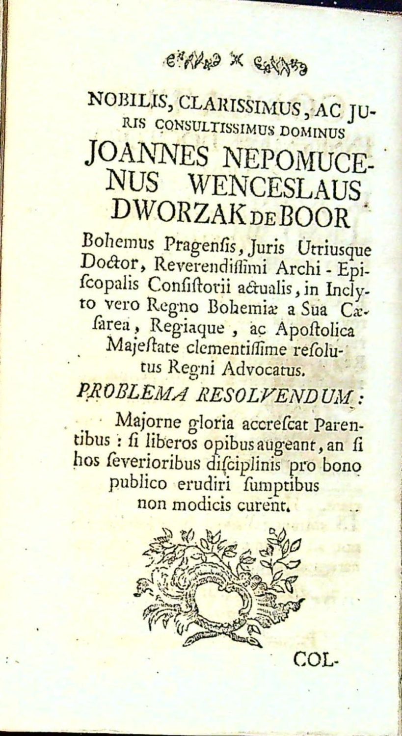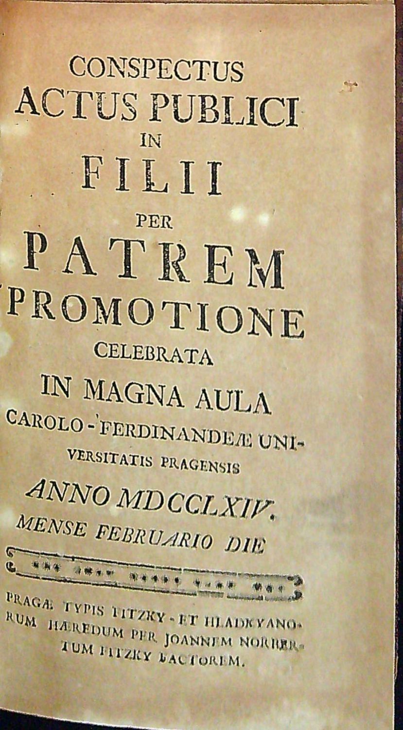 CONSPECTUS ACTUS PUBLICI IN FILII PER PATREM PROMOTIONE CELEBRATA IN MAGNA AULA CAROLO-FERDINANDEAE UNIVERSITATIS PRAGENSIS.