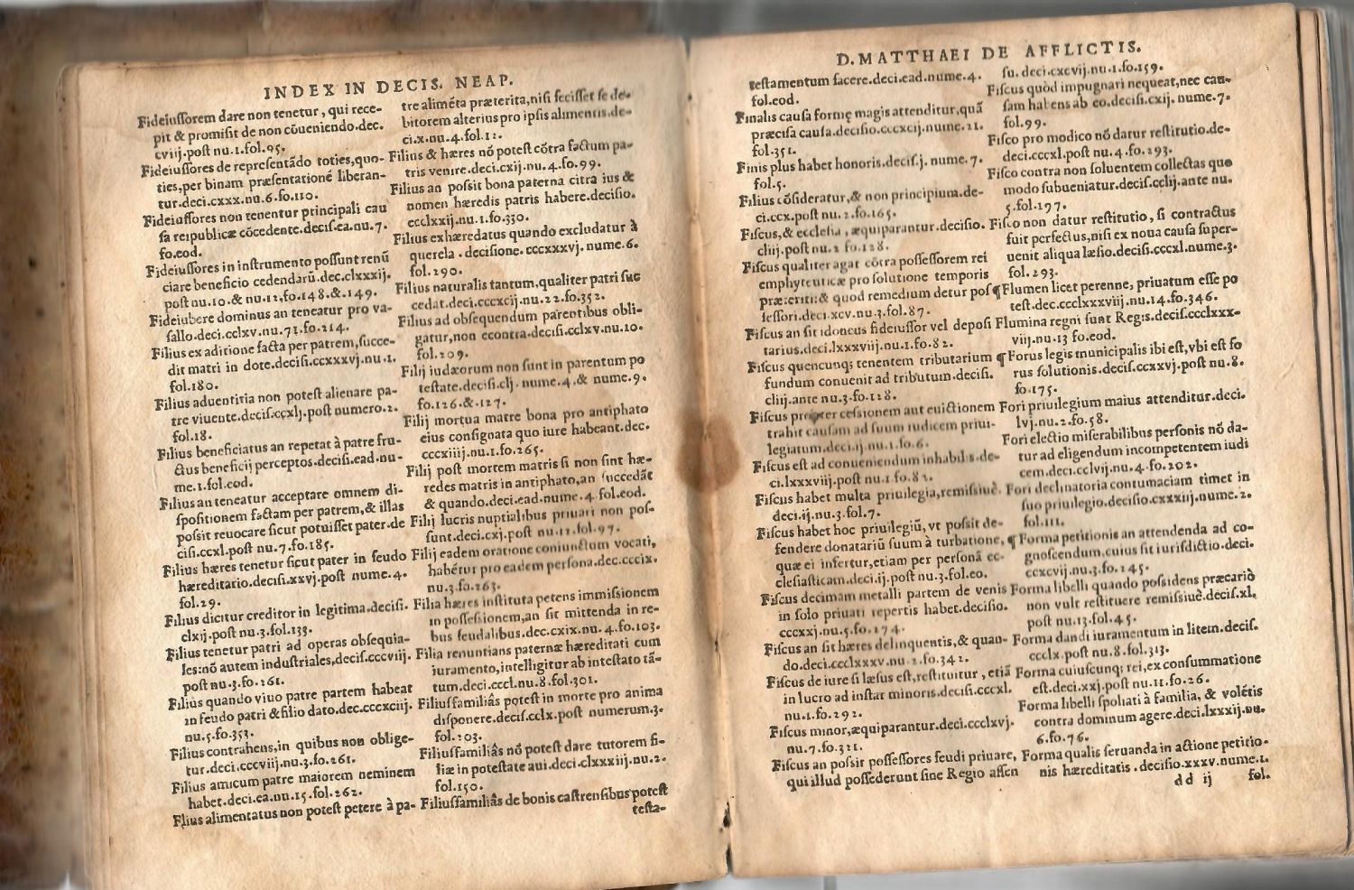 Index VERBORVM, RERVM, AC SENTENTIARVM MAXIME INSIGNIVM, IN Decisiones Neapolitanas D. Matthaei de Afflict. Parthenopaei, viri vtriusq; censurae citra controuersiam celeberrimi: tanta iam demum fide, studio & industria colectus: vt vel ad copia, vel venustatem a quoqua nihil omnino iure possit desiderari.
