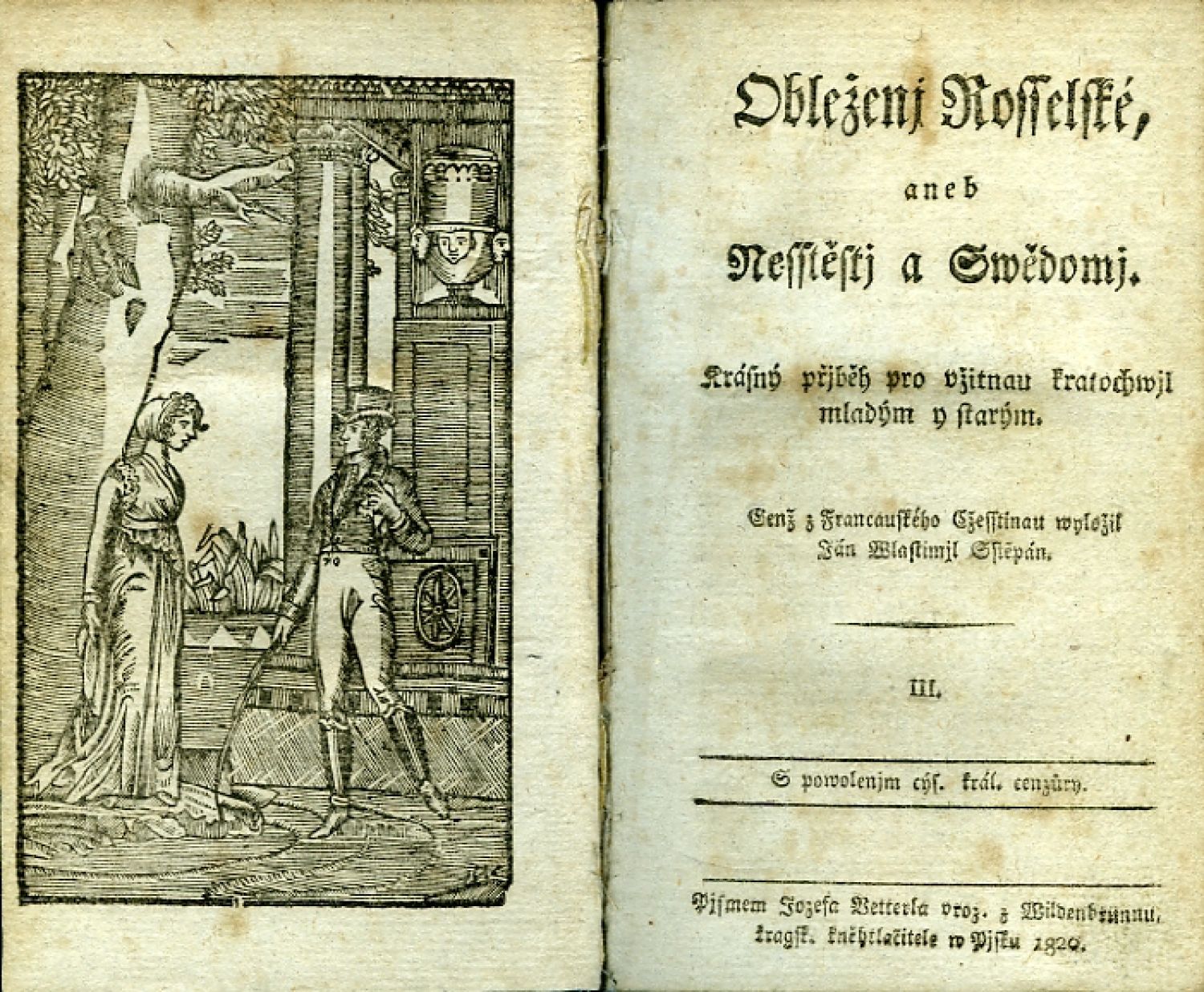 Obleženj Rosselské, aneb Nesstěstj a Swědomj. Krásný přjběh pro vžitnau kratochwjl mladým y starým. Genž z Francauzského Cžesstinau wyložil Ján Wlastimil Sstěpán. III.+IV. [ze čtyř].