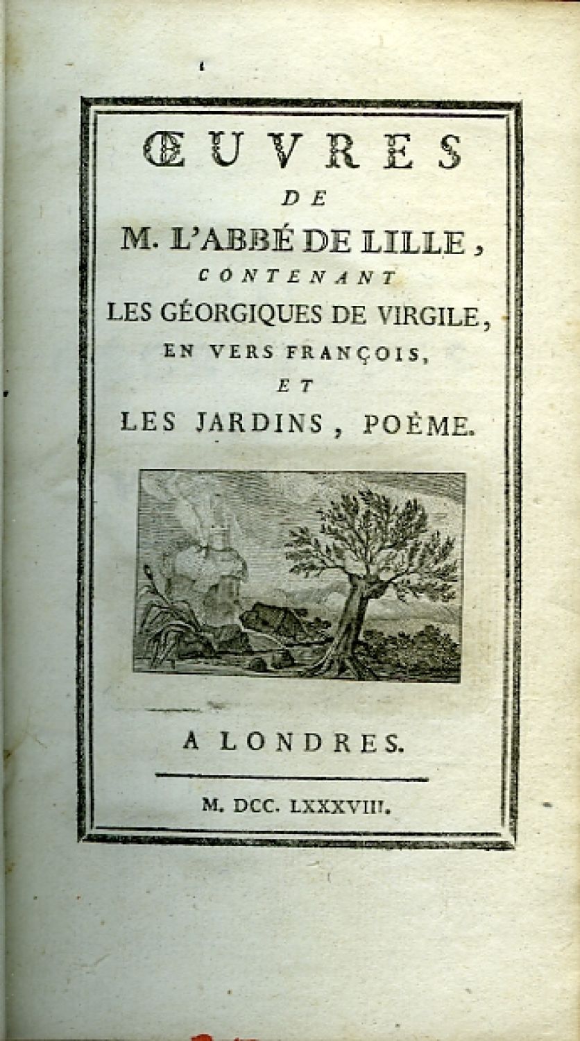Oeuvres de M. L´abbé Delille, contenant Les Géorgiques de Vergile, en vers froncois, et Les Jardins, poéme.