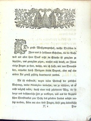 Wichtige und bedentliche Fragen eines in der wahren Hermetischen Philosophie emsig suchenden und in Praxin begriffenen Schülers an dem Hoch=Weisen Philosophus und Freund Wahrer Schüler Herrn Hermann Fictuld oder dessen Nachfolgere Fr. Albert.