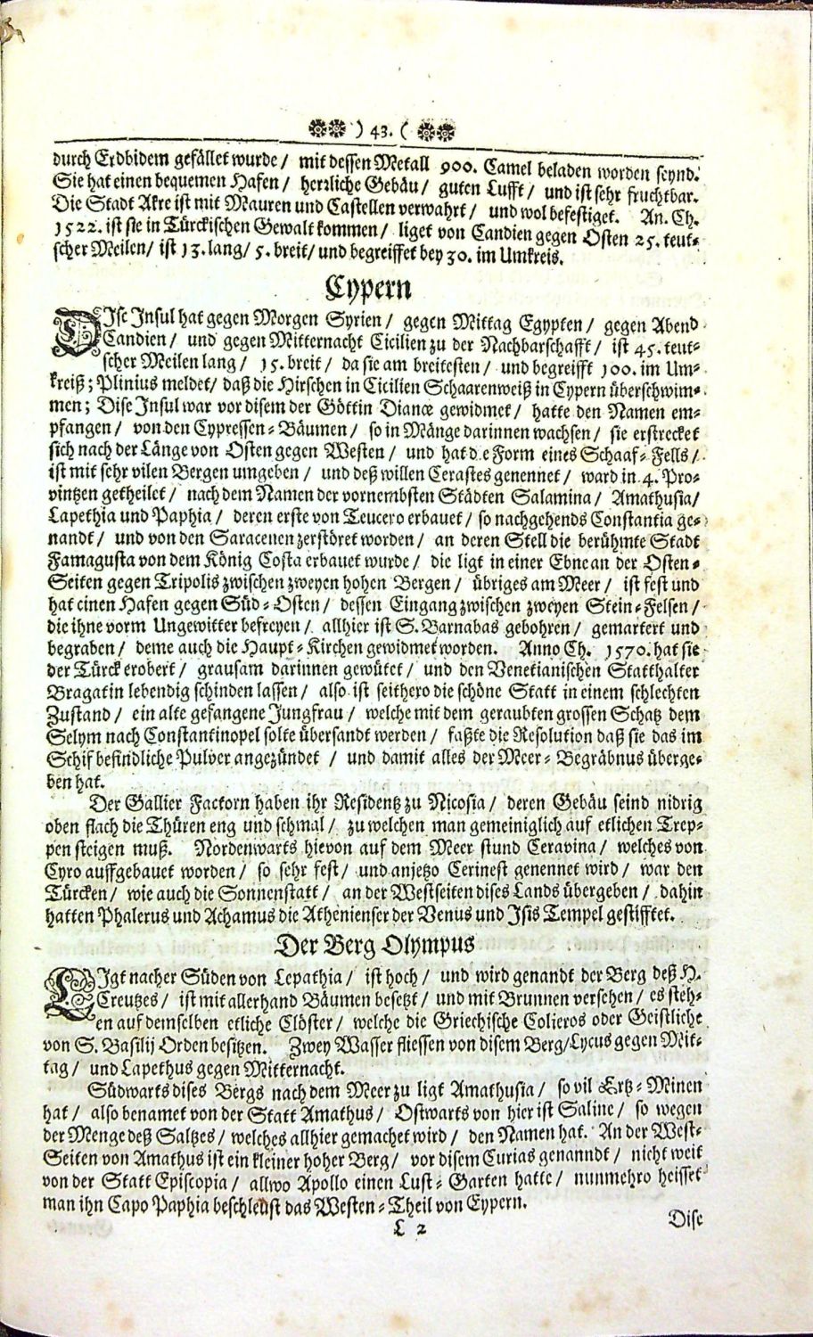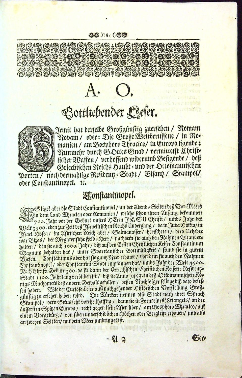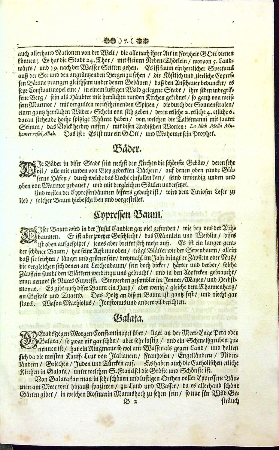 Die Hoche Stein=Klippen und Gebürge/ CYANEAE, OLYMPUS und ATHOS. Von welchen zu sehen seyn: Die Grosse/ Welt=Beruffene/ zwischen dem Schwartzen und Weissen Meer/ am Bosphoro Thracico/ in Europa ligende/ dess Griechischen Reichs Haubt= und der Ottomannischen Porten/ dermahlige Residentz = Stadt Bysantz/ Roma Nova/ Stampol oder Constantinopel. Mit deroselben Ringsumbligenden Meeren und Landen/ Vornehmen Innsulen/ Städten/ Festungen/ Gebürgen/ Wasser=Flüssen/ Früchten/ Thieren/ Vögeln/ Fischen/ Antiquitäten und Raritäten etc. Dem Curiosen Leser zur Nachricht/ und Belustigung/ Historisch/ und in Kupffern vorgestelle.