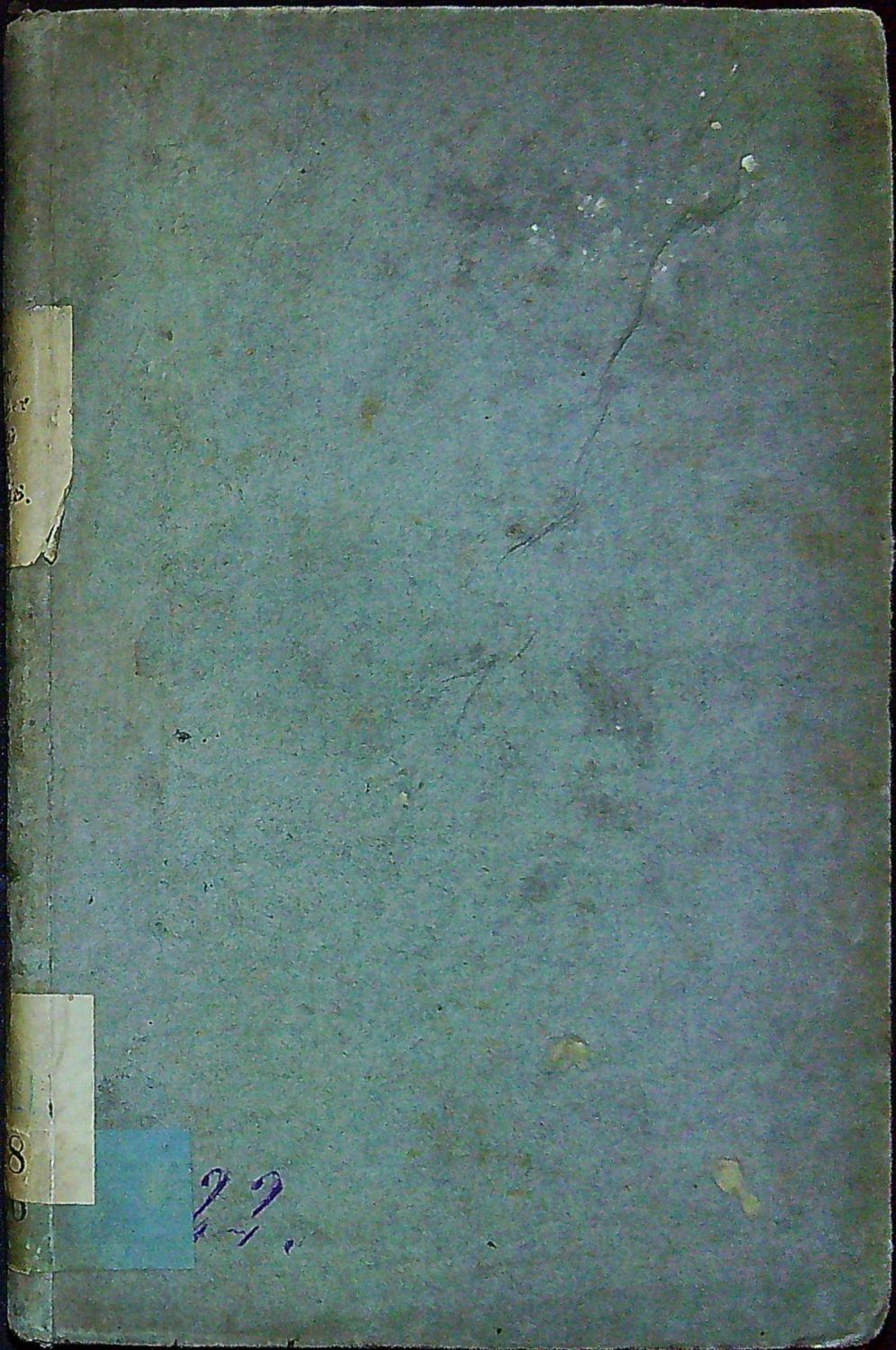 Dobová kartonová vazba přes hřbet přelepené dva staré papírové štítky, první s rukopisně napsaným názvem knihy, druhá s knih. číslem. Desky vazby ohmatané a místy zašpiněné. Na titulním listu dvě stará razítka drážďanské zednářské lóže.