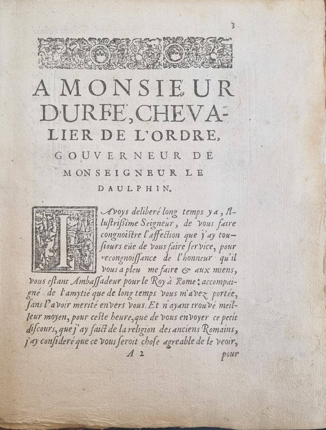 DISCOVRS DE LA RELIGION DES ANCIENS ROMAINS, Escript par Noble Seigneur Guillaume du Choul, Conseiller du Roy, et Bailly des montaignes du Daulphiné, ET Illustré d´un grand nombre de medailles, et de plusieurs belles figures retirées des marbres antiques, qui se trouvent á Rome, et par nostre Gaule.