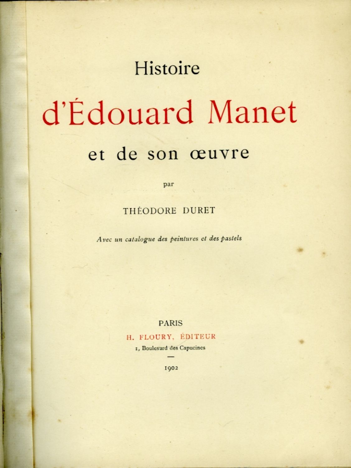 Histoire d'Édouard Manet et de son oeuvre ... Avec un catalogue des peintures et pastels.
