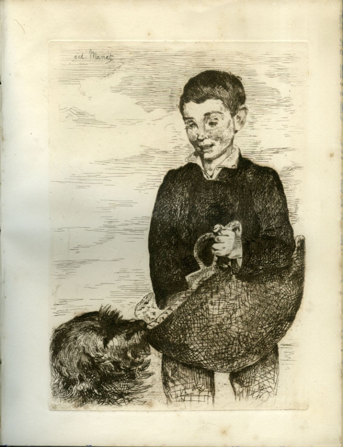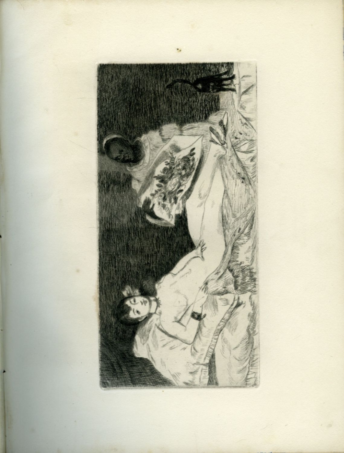 Vytiskl Charles Renaudie v Paříži v 600 výt. (z toho 50 na japanu). - Jeden z 550 ex. na velínu. Modrý plátěný pokryv hřbetu s bíle tištěným věcným názvem zvrásnělý, desky potažené modrým papírem a s plátěnými nárožicemi, na okrajích odřené a přelepené přední a zadní stranou pův. ilustrované obálky, zadní silně zahnědlá; modře mramorované ořízky. Vpředu vevázán dvoulist s anoncí na vydání tohoto titulu obsahující tit. list, anotaci, ukázku ilustrace a ceník. Na předních a zadních listech, jakož i na některých přílohách vč. 1. leptu hnědé skvrnky.