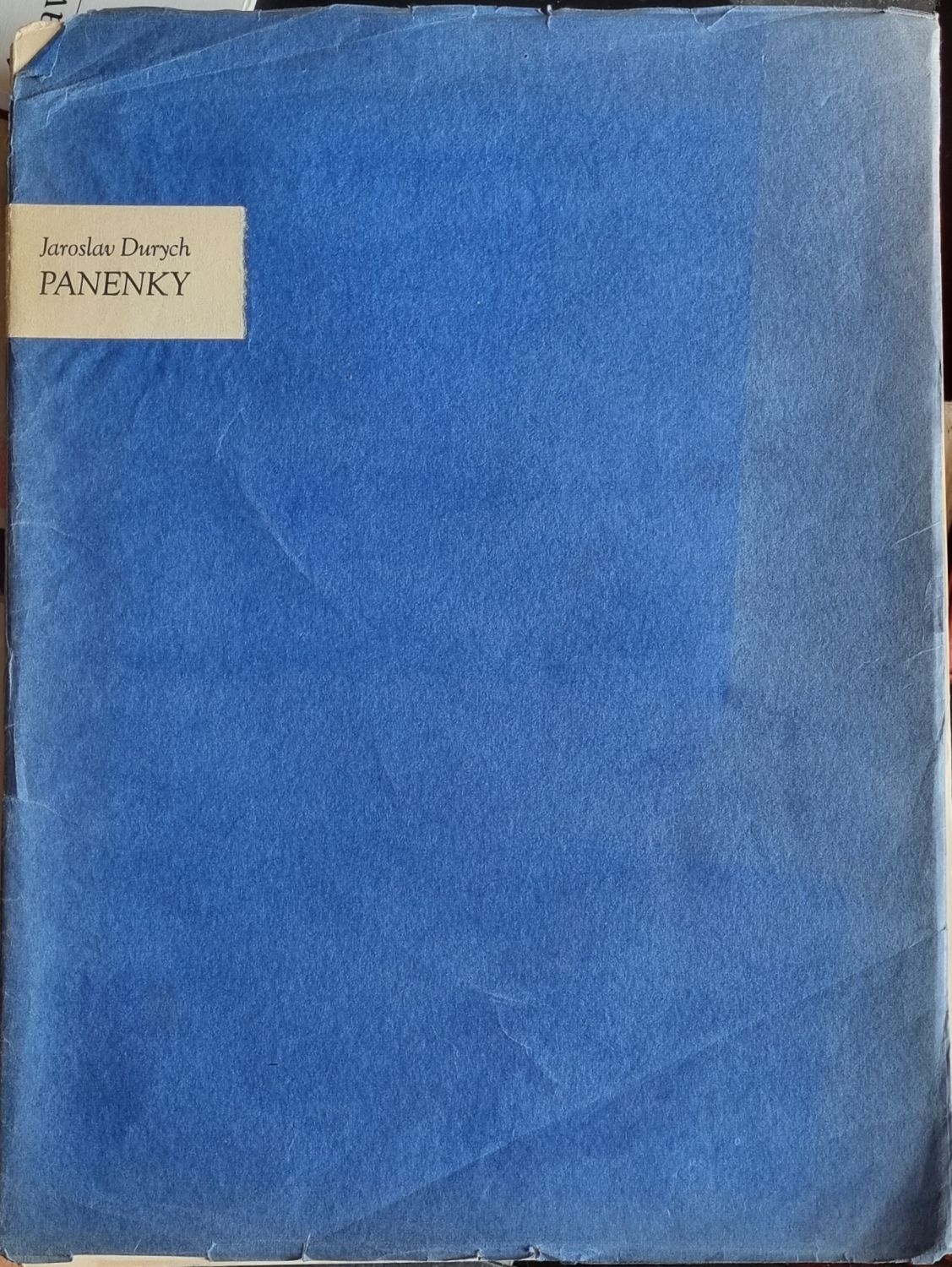 Papírové desky obaleny modrým papírem, který je při okrajích lehce pomačkaný a místy drobně natržený a vybledlý. V levé horní části přední desky vlepen papírový štítek s věcným názvem knihy.