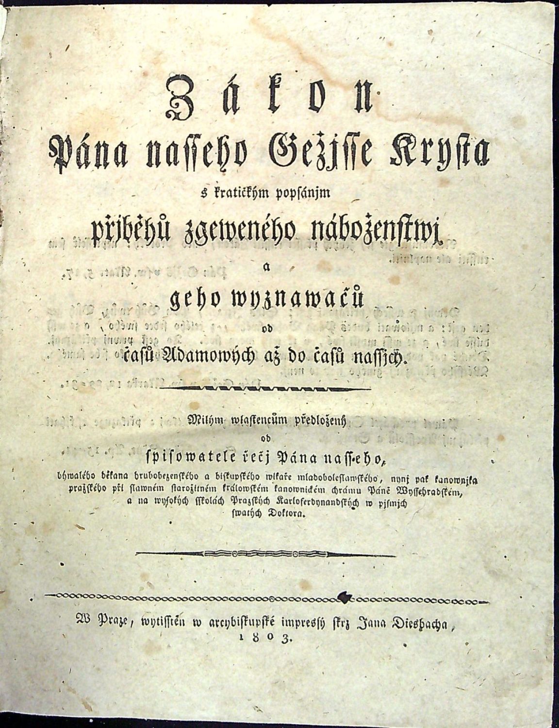 Zákon Pána nasseho Gežjsse Krysta s kratičkým popsánjm příběhů zgeweného náboženstwj a geho wyznawačů od časů Adamových až do časů nassjch.