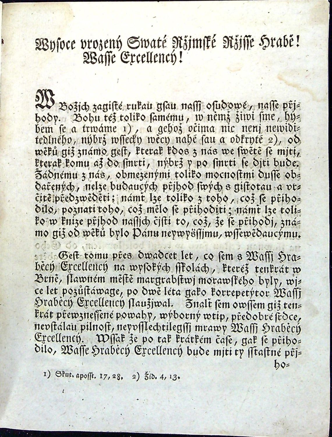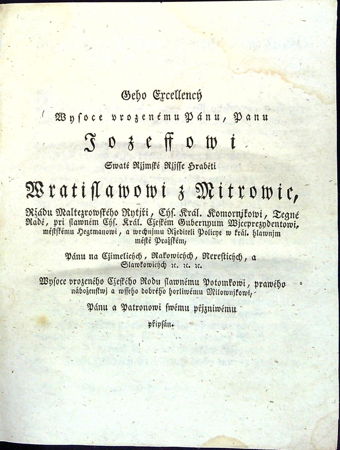 Dobová kožená vazba, ve hřbetu 4 vazy, papír místy zahnědlý, na několika listech světle hnědé mapy od vlhkosti, rejstřík vevázaný za předmluvou autorovou. Poslední dva listy uvolněné z knižního bloku.