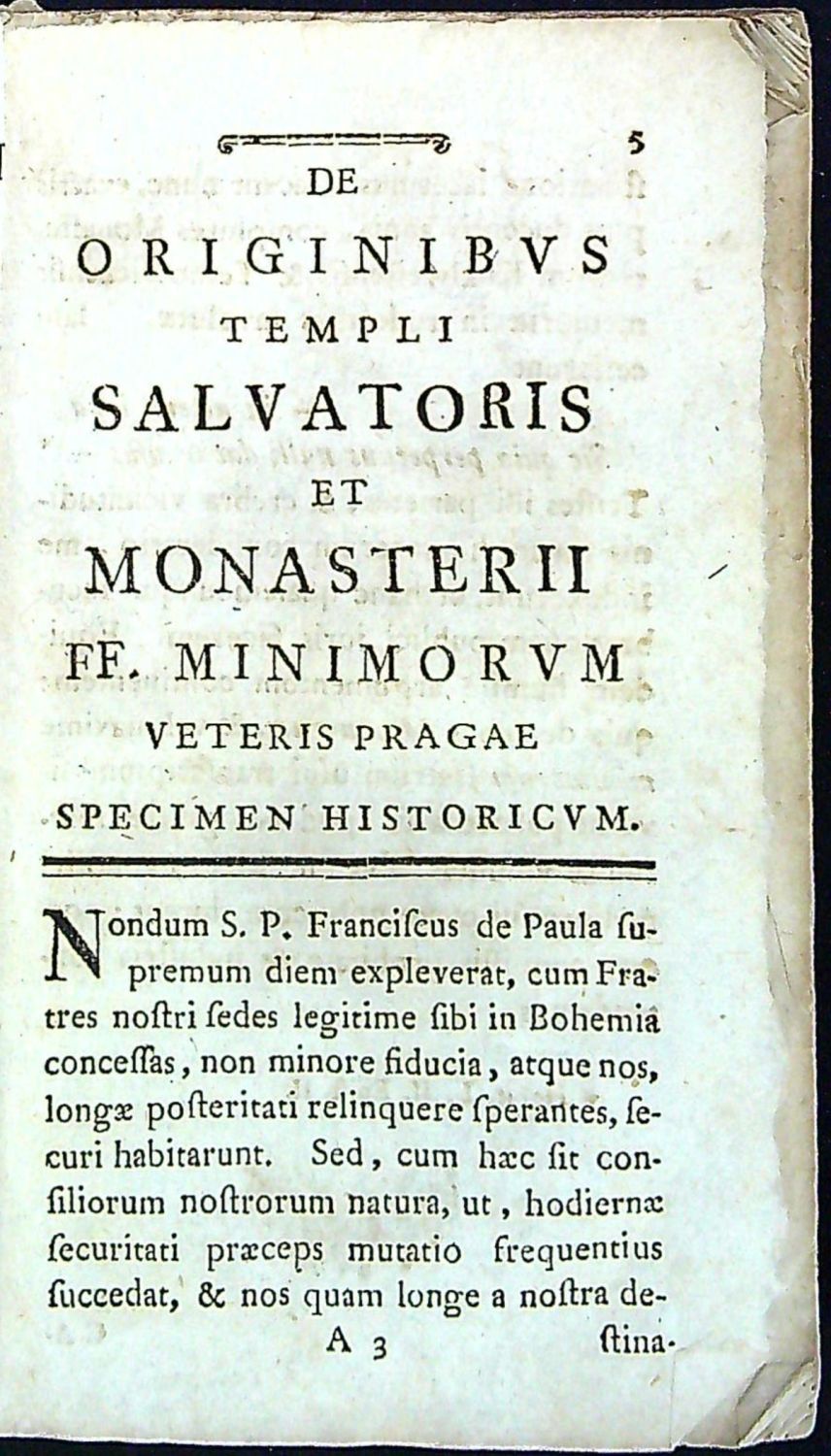 De originibus templi Salvatoris et monasterii Fratrum Minimorum S. Francisci de Paula Veteris Pragae