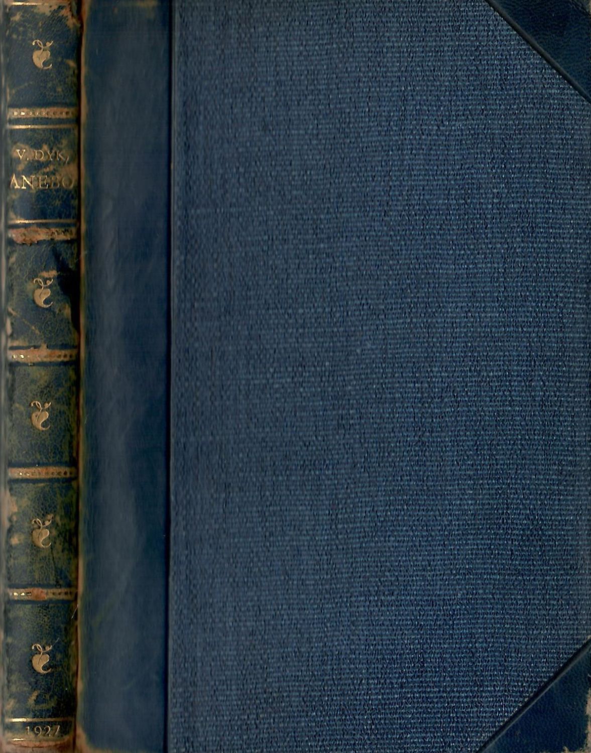 Dobová kartonová vazba s deskami potaženými temně modrým plátnem, kožený hřbet a nárožnice, ve hřbetu 5 vazů, ve druhém poli tlačený a zlacený název, v ostatních polích tlačený a zlacený rostlinný ornament, zlacená svrchní ořízka. Na předním přídeští nalepeno ex libris O. Blažíčka. Kůže ve hřbetu (temně modrý marokén) a na nárožnicích místy odřená.
