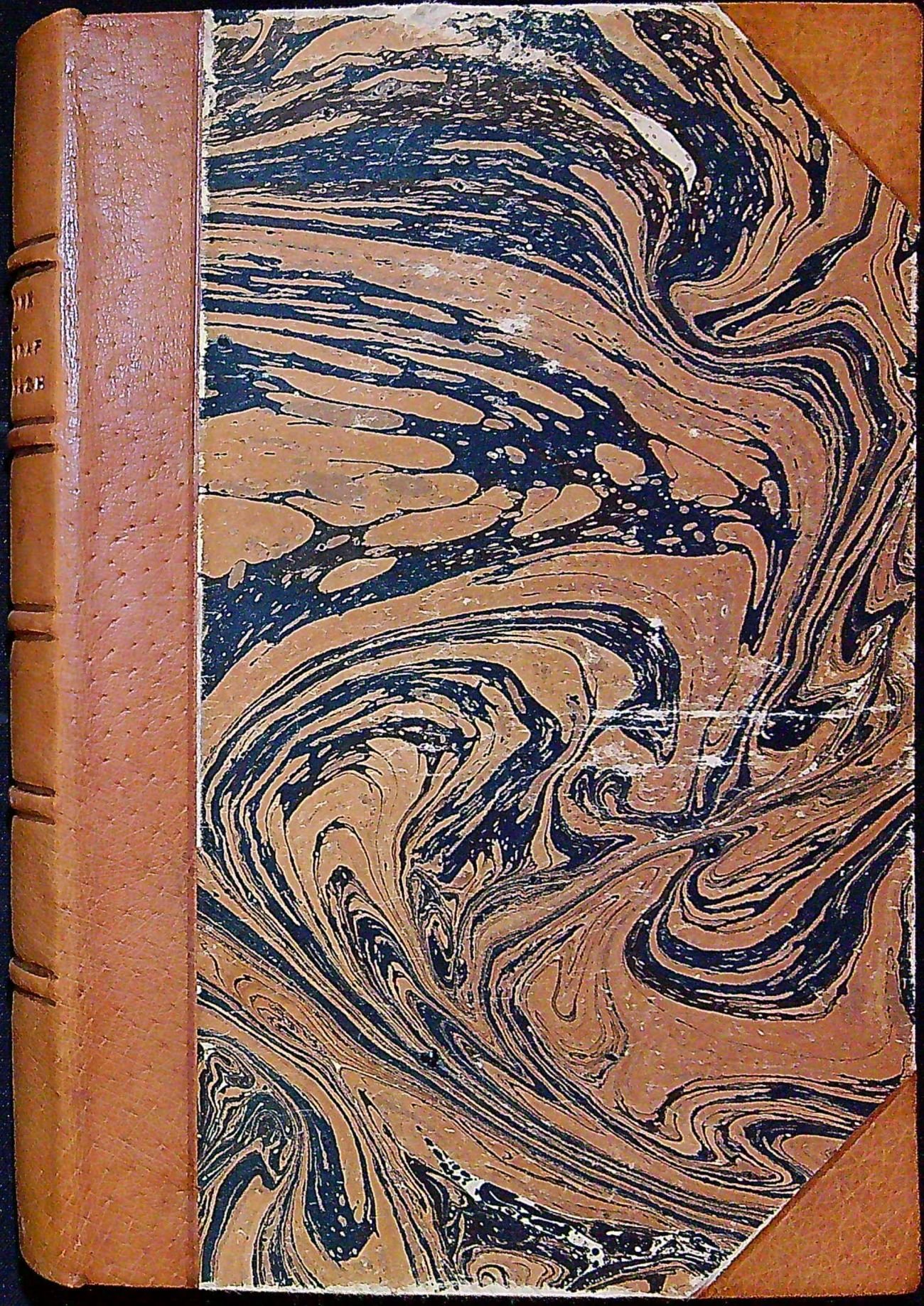 Dobová vazba s kartonovými deskami potaženými mramorovaným papírem, kožený hřbet a nárožnice. Ve hřbetu 5 vazů, ve druhém poli tlačený název, červeně barvená svrchní ořízka. Pap. pokryv na deskách vazby na několika místech lehce odřený. Knižní blok neoříznutý.